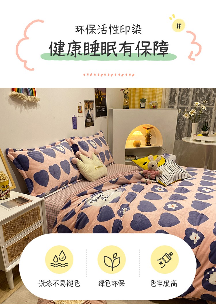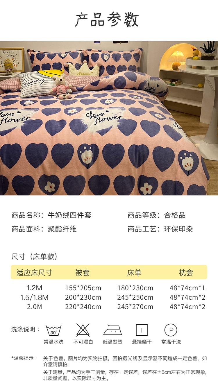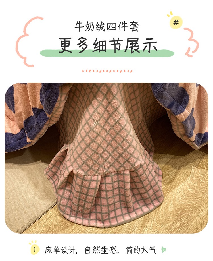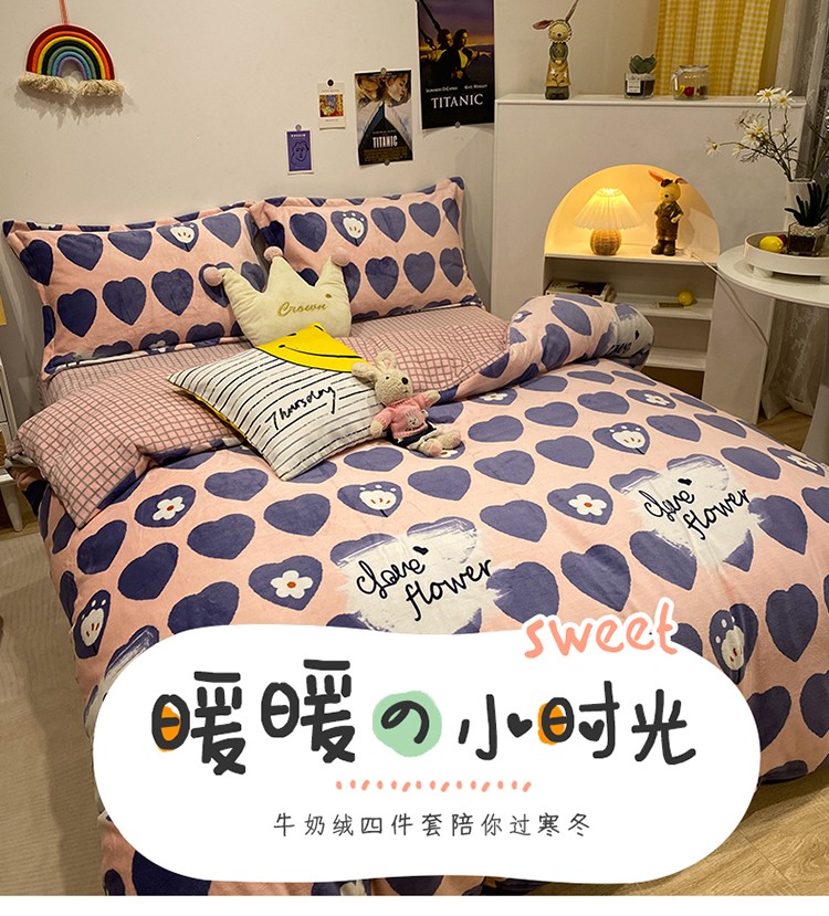 商品名称:珺柔家纺2021新款牛奶绒印花四件套 心莹