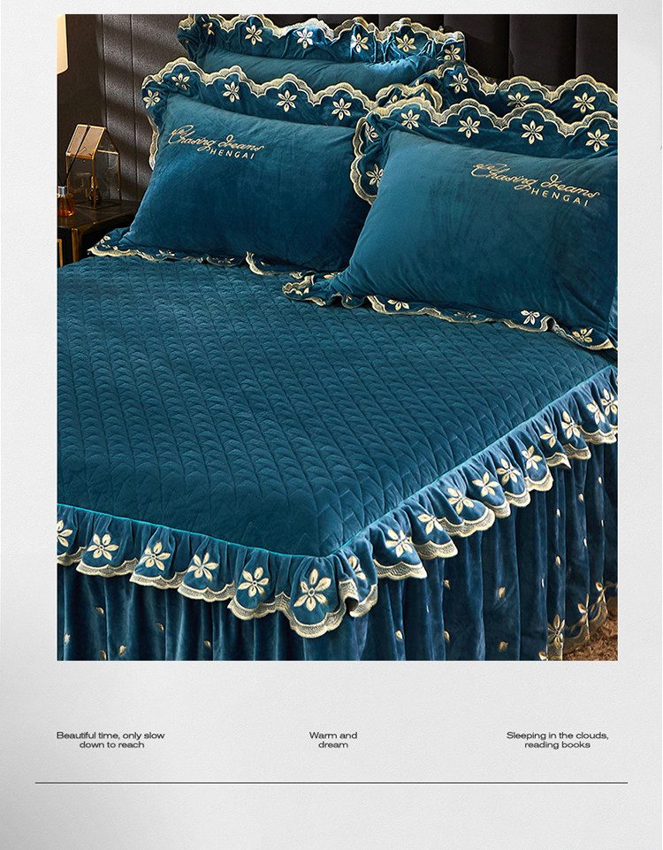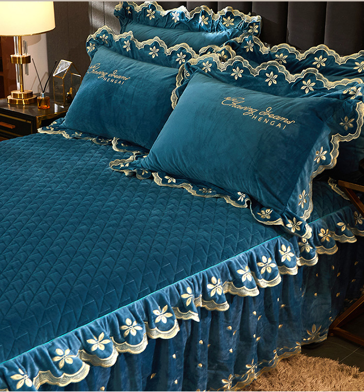 (总)恒爱 2022秋冬水晶绒翩翩花舞夹棉床裙四件套,大红色,豆沙红,橄榄绿,公主粉,桔色,咖啡色,孔雀绿,拉菲红,罗兰紫,玫红色,美人玉,米白色,米驼色,抹茶绿,浅灰色,紫色