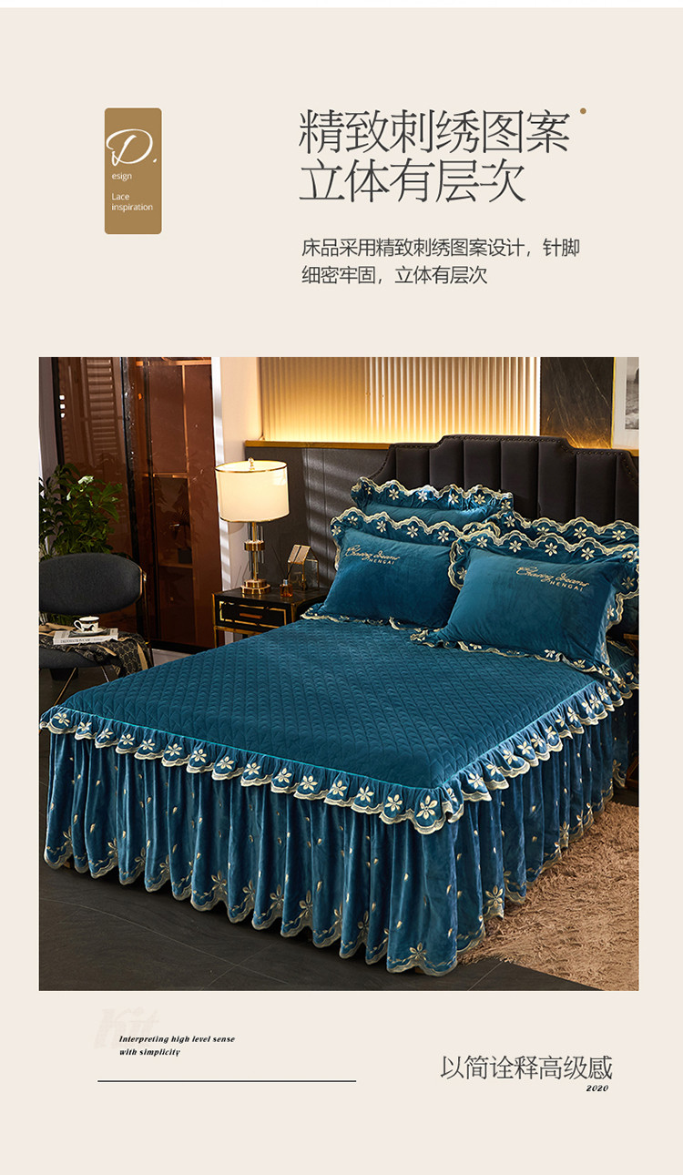 商品名称:恒爱2021新款轻奢系列刺绣款单床裙 宾利蓝
