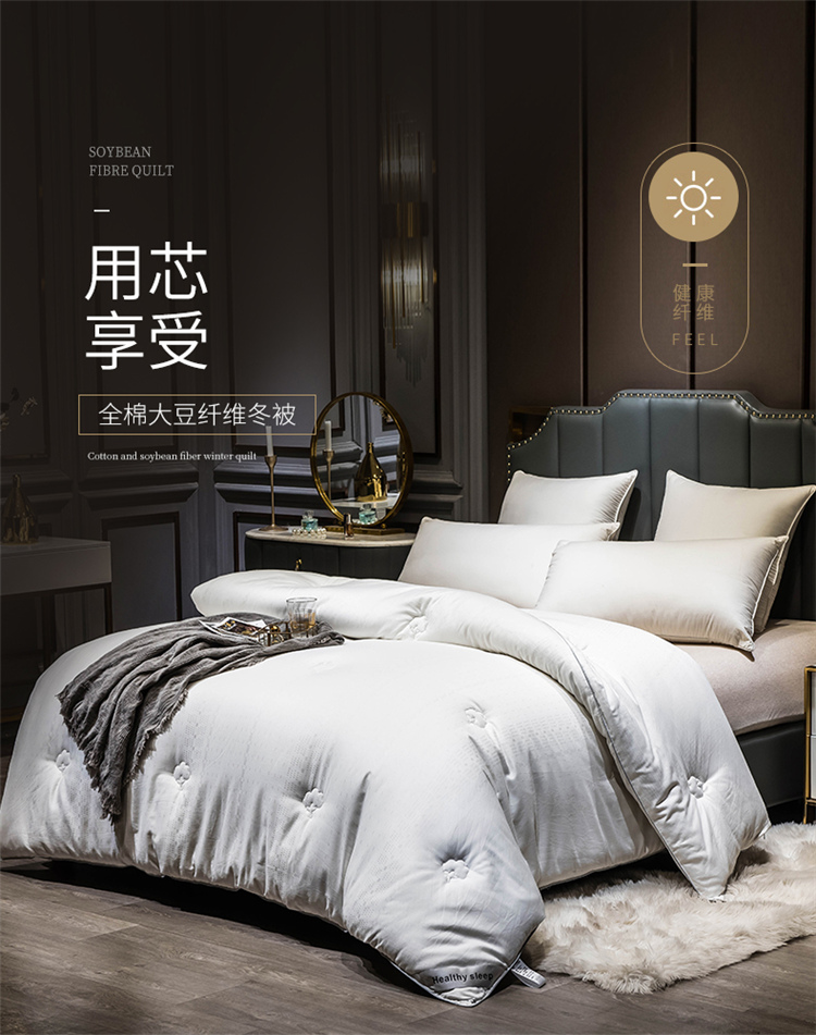 寐居家纺 2021新款大豆纤维提花被子被芯冬被 大豆白