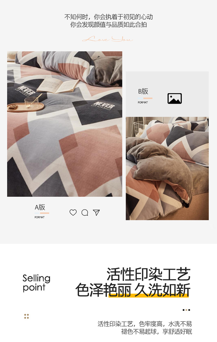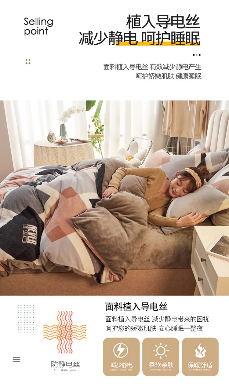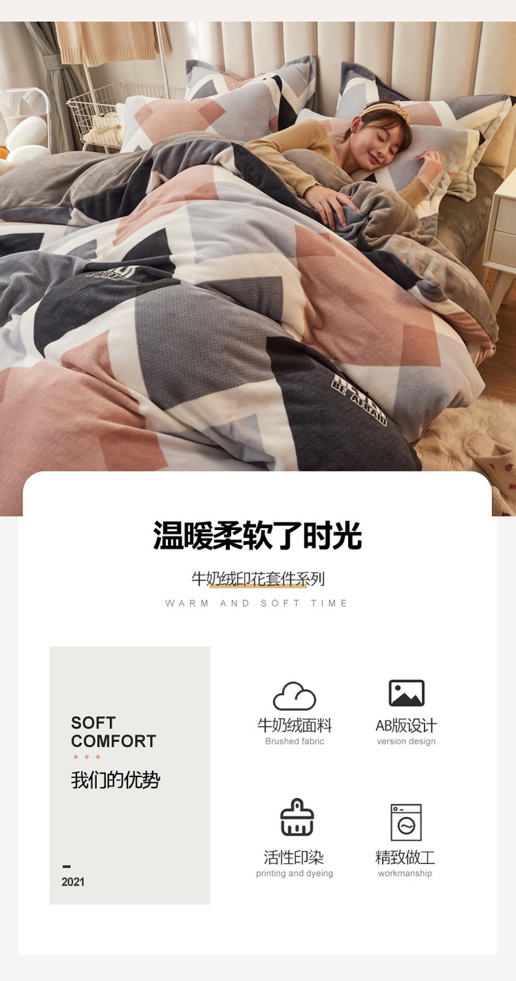 商品名称:寐居家纺 2021新款牛奶绒单被套棚拍图 菱形格