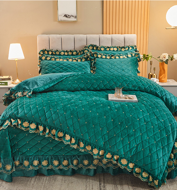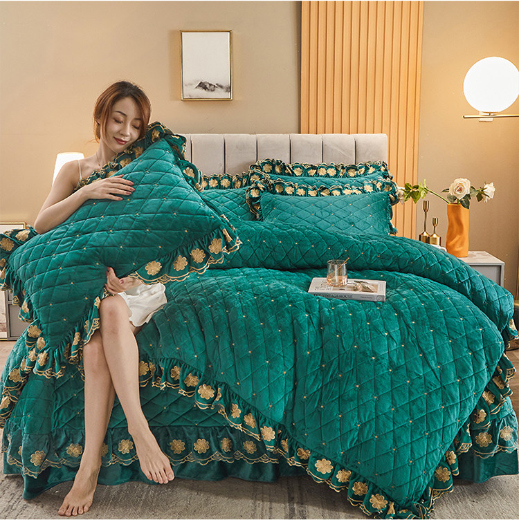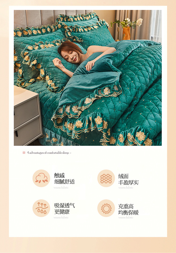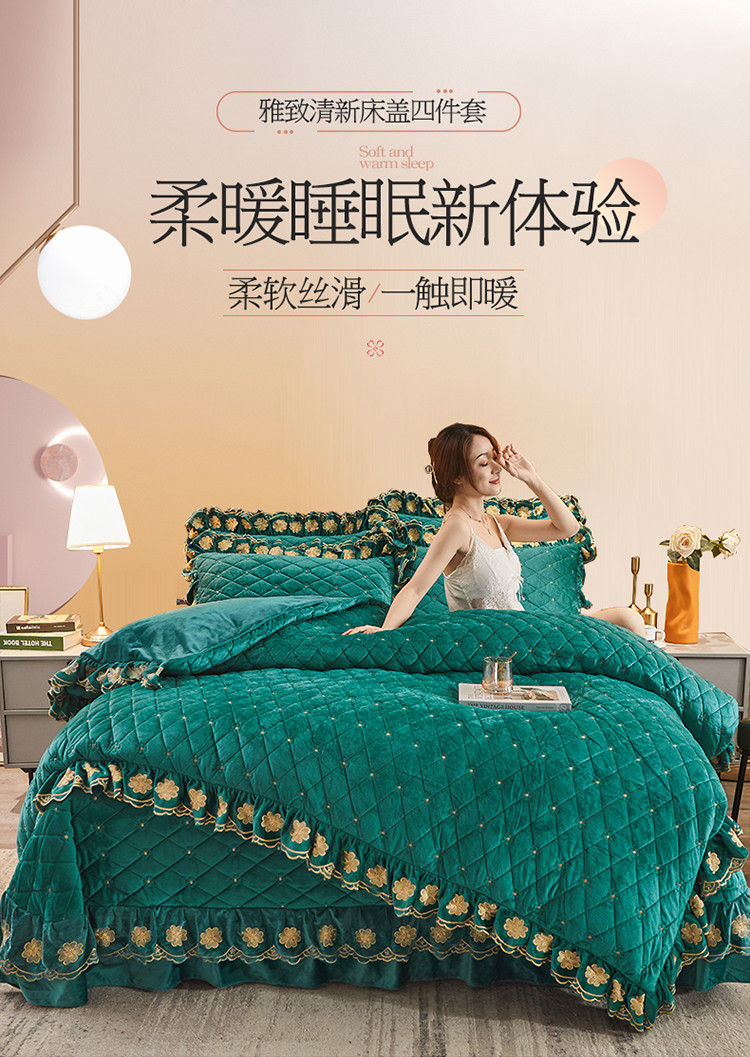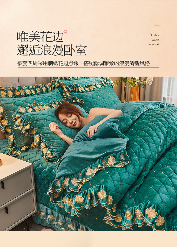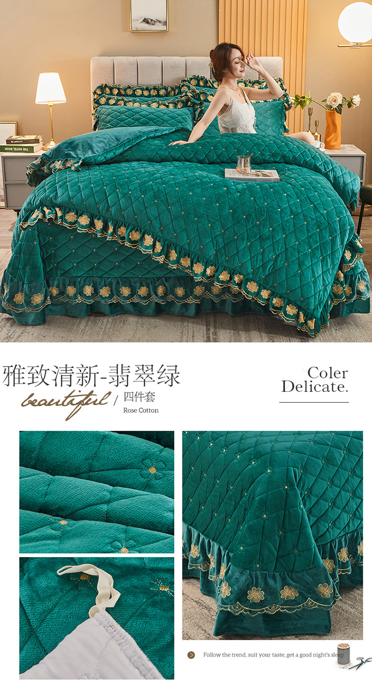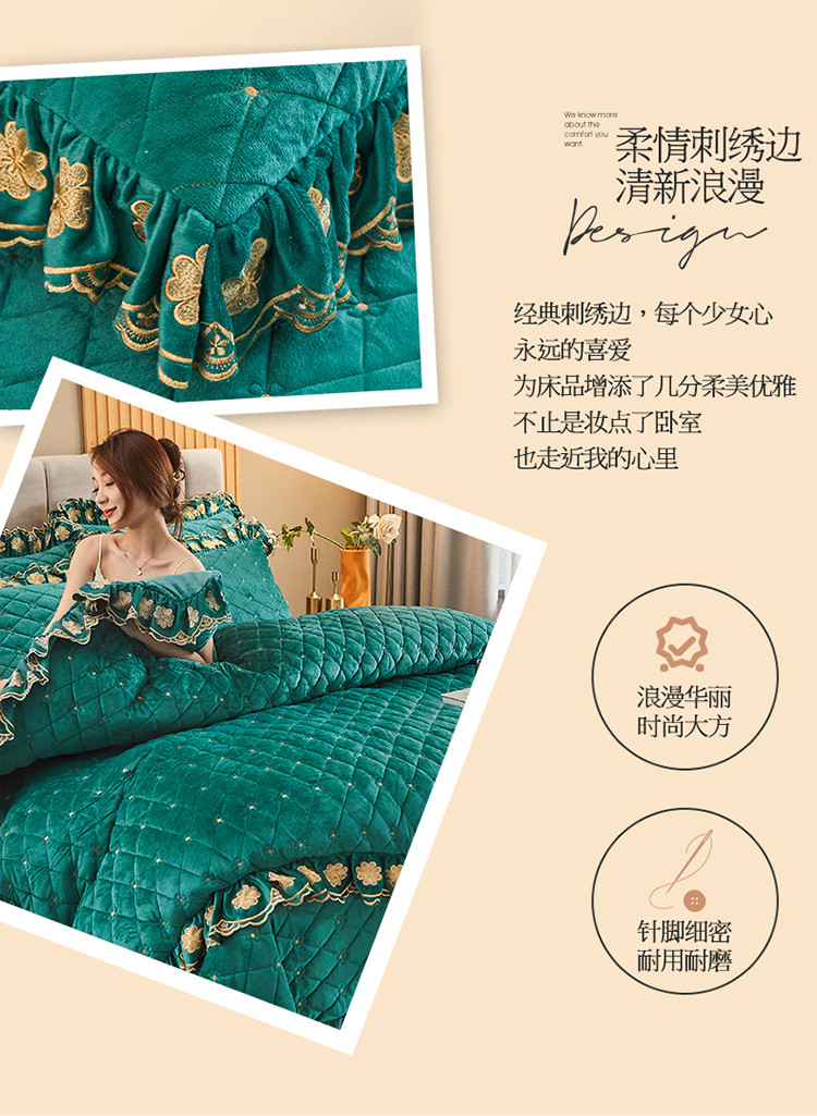 (总)恒爱 2022秋冬水晶绒翩翩花舞夹棉床裙四件套,大红色,豆沙红,橄榄绿,公主粉,桔色,咖啡色,孔雀绿,拉菲红,罗兰紫,玫红色,美人玉,米白色,米驼色,抹茶绿,浅灰色,紫色