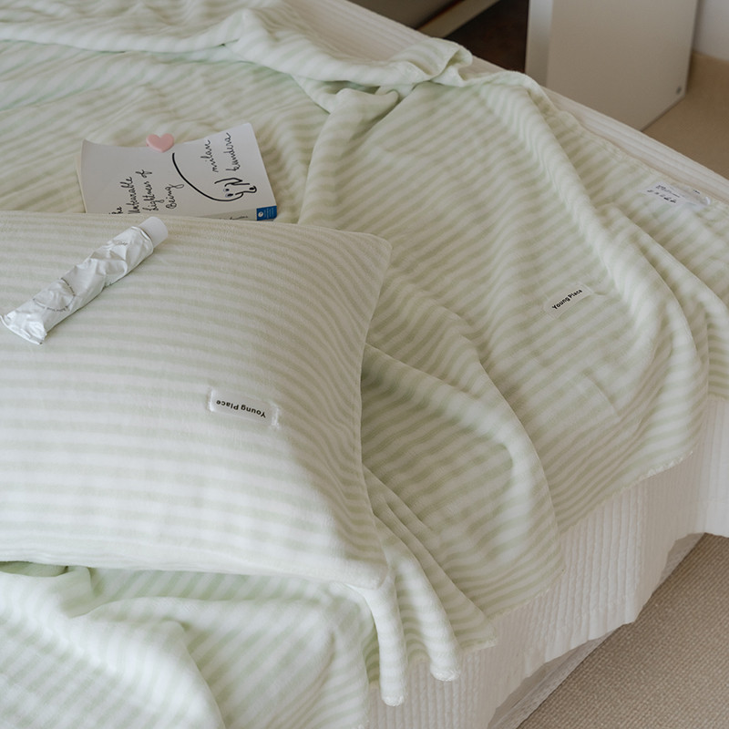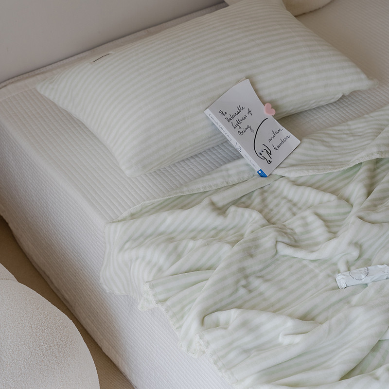洋铭区 2021新款牛奶绒彩虹条毯子系列 彩虹绿