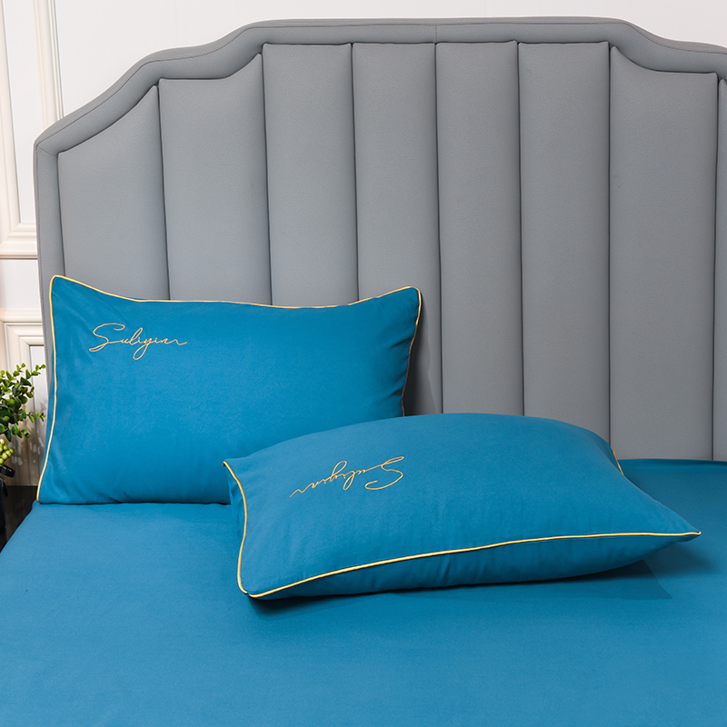 商品名称:孟鑫家纺 2021新款加厚纯色刺绣磨毛四件套 月光蓝