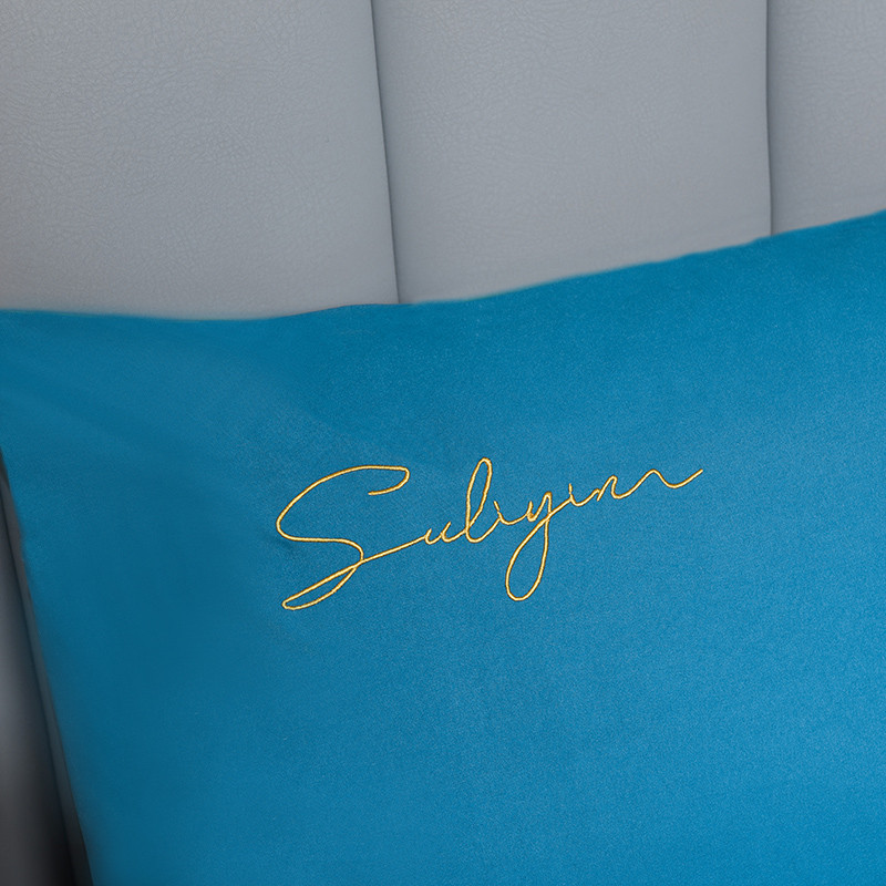 孟鑫家纺 2021新款加厚纯色刺绣磨毛四件套 月光蓝