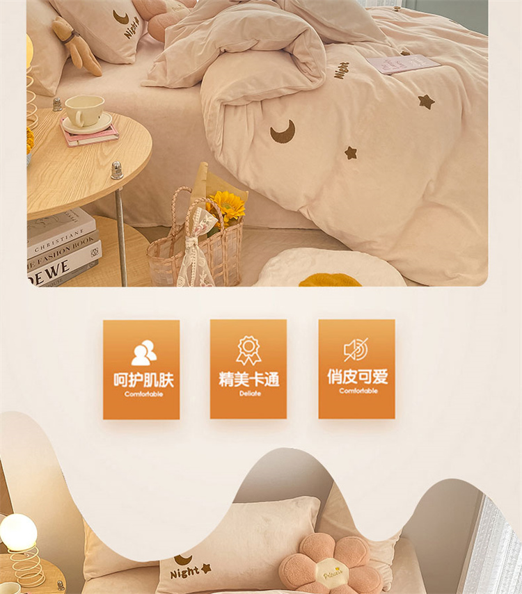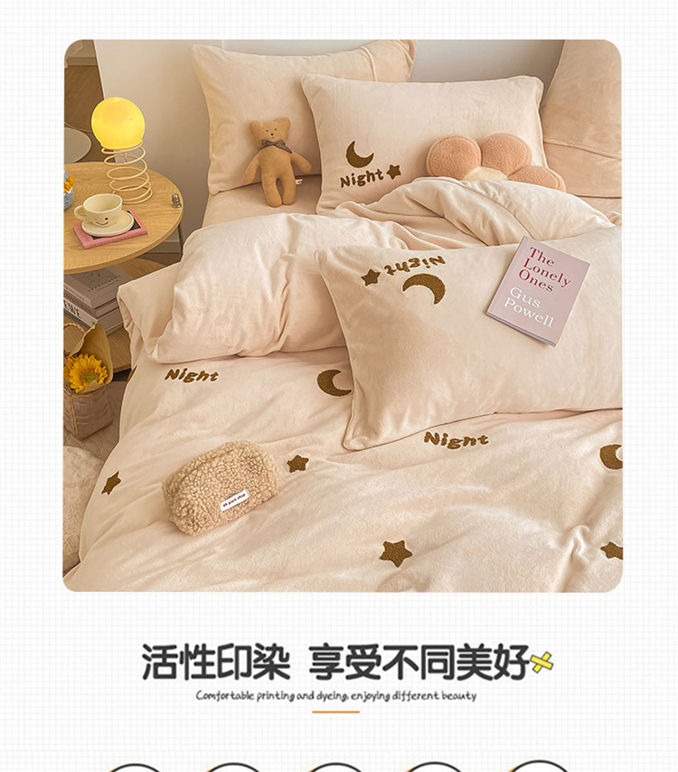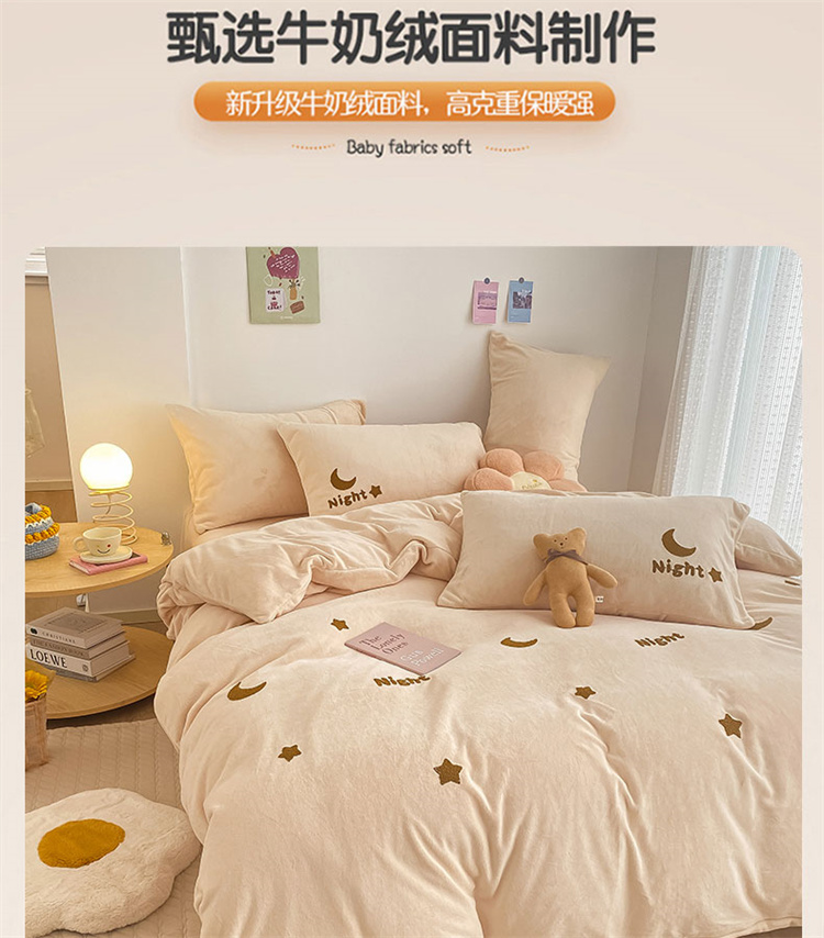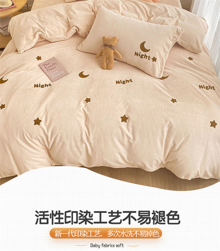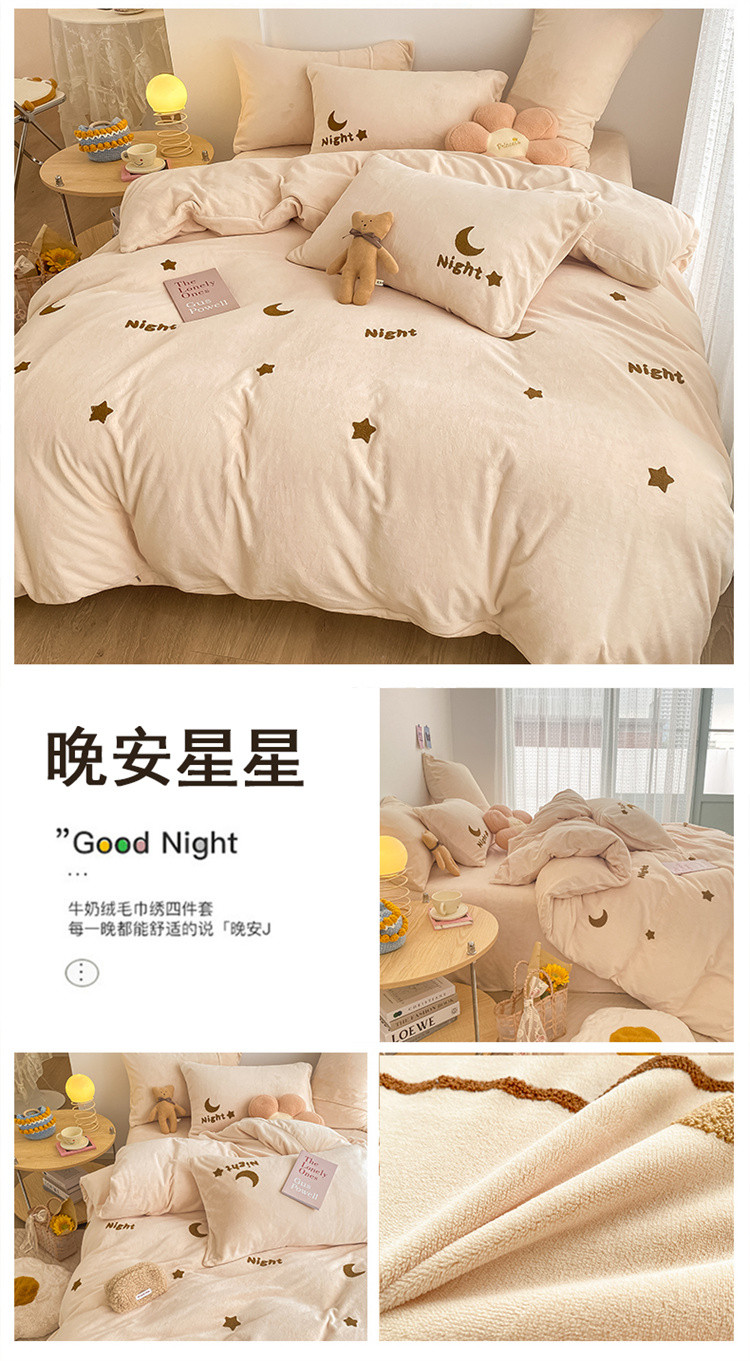 商品名称:川悦生活 2021新款高克重牛奶绒毛巾绣四件套 晚安星星