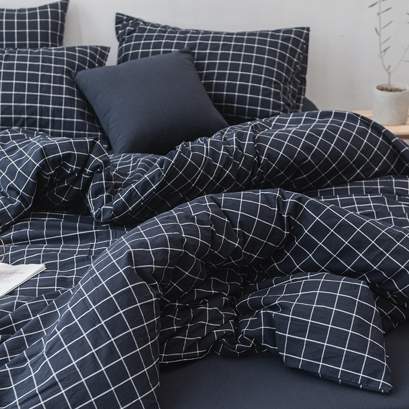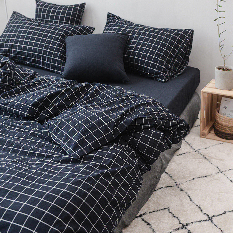 当前位置: 91家纺网 > 商品网购 > 床品套件 > 四件套 > 水洗棉四件套 > 柠萌家居 2021新款全棉色织水洗棉床品四件套 藏青方格