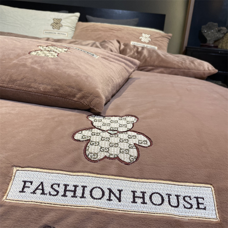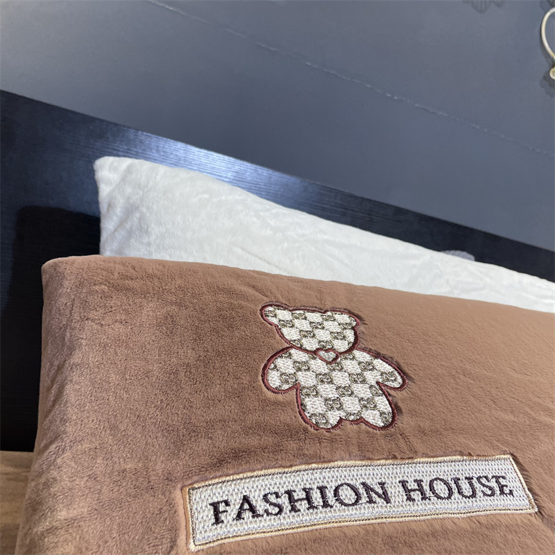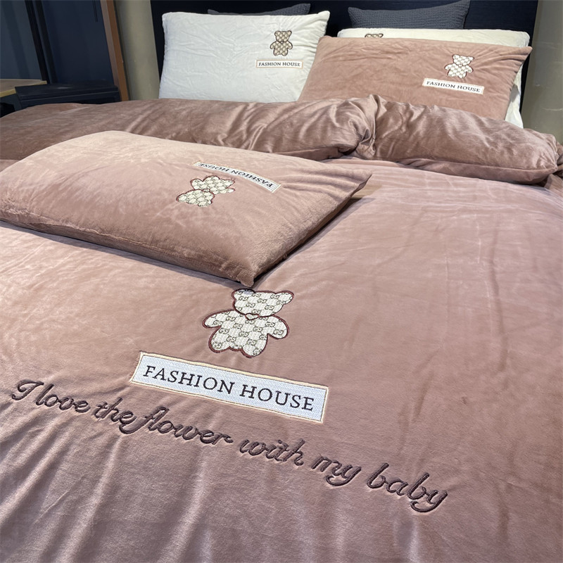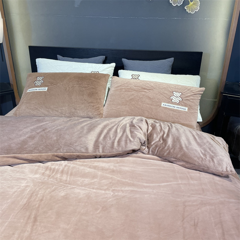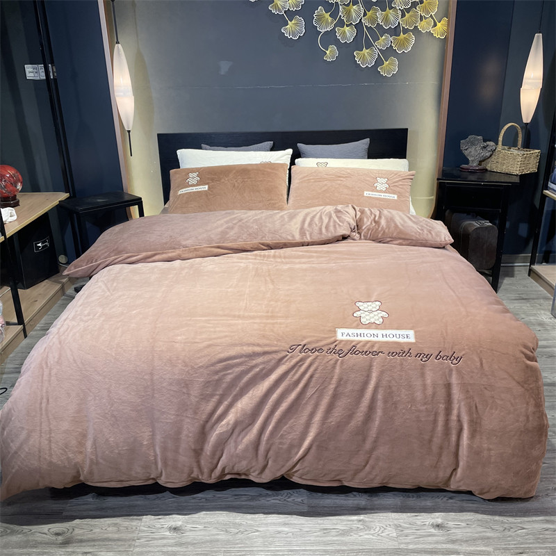 玖玖爱家纺 2022新款亲肤玉兔绒四件套 小熊咖