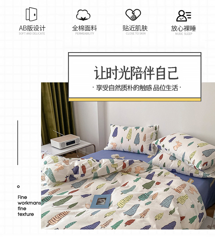 麦伦 春季新品全棉40S斜纹印花休闲轻奢系列被套丛林兔