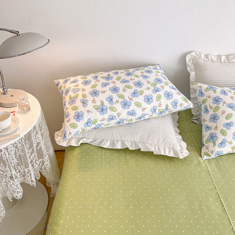 麦伦春季新品全棉40S斜纹印花休闲轻奢系列枕套一个 茶树花绿