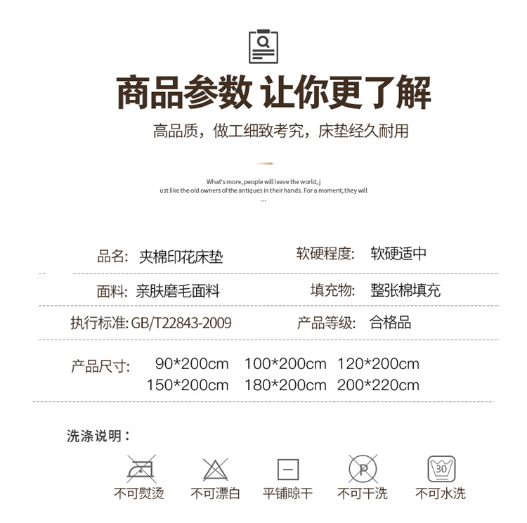 商品名称:易展家居 2023新款高弹磨毛夹棉印花软床垫 染指流年