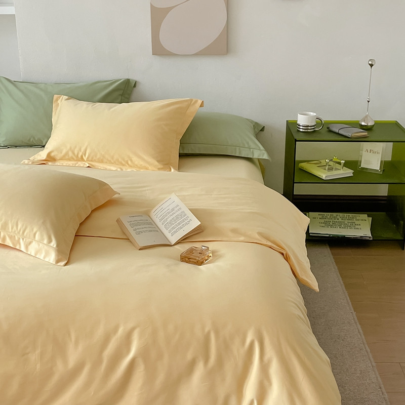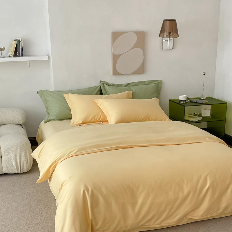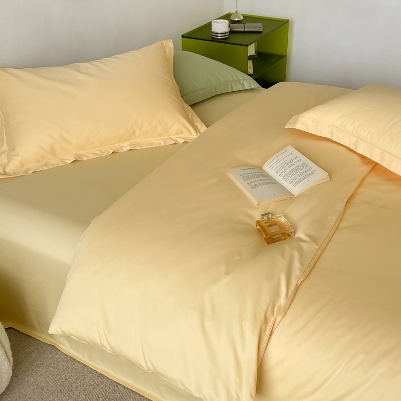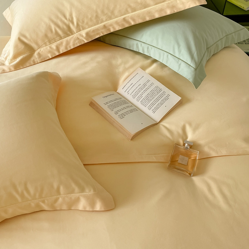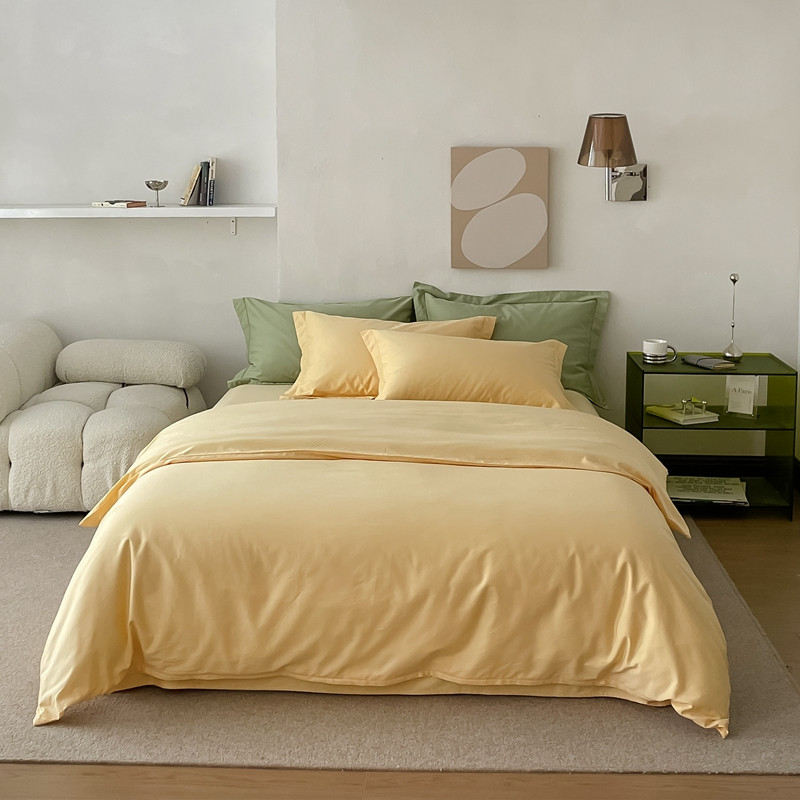蕊姿 超柔水洗春夏新款50s双股新疆长绒棉纯色被套奶油黄
