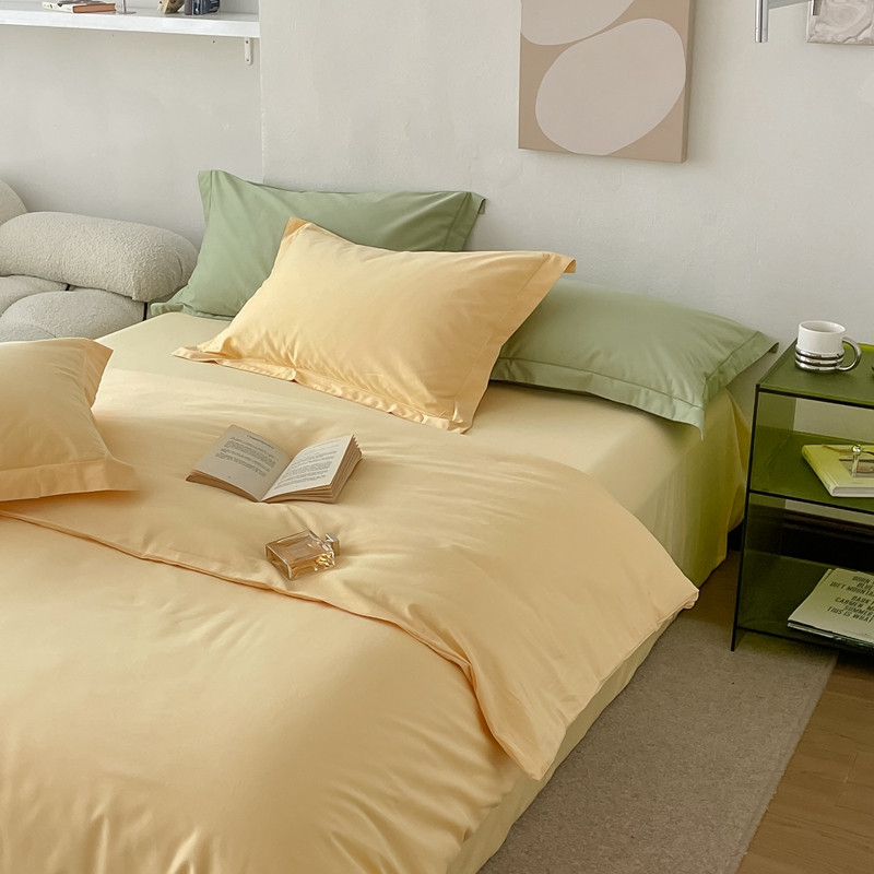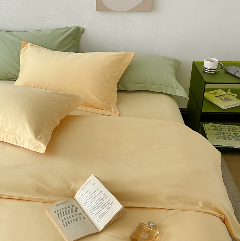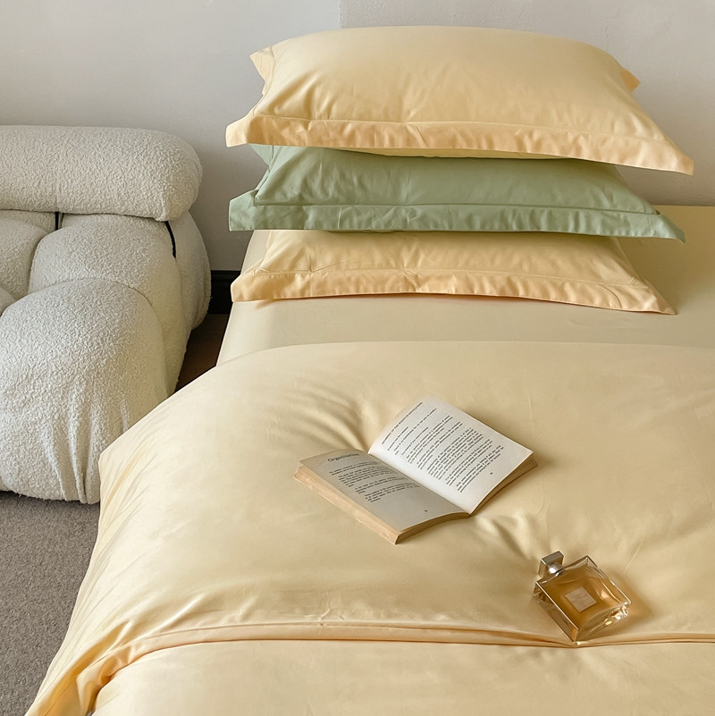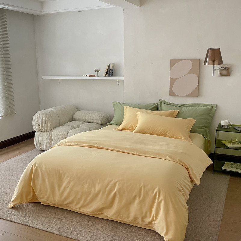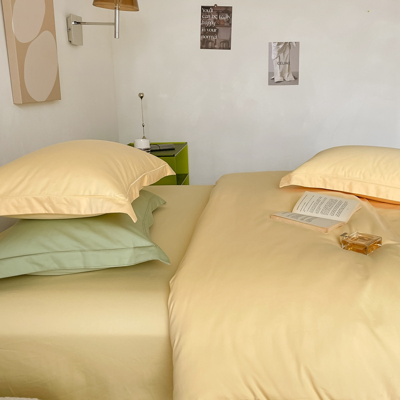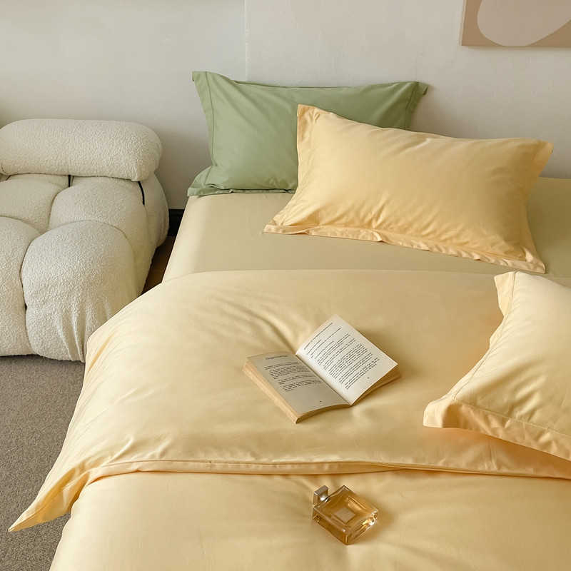 蕊姿 超柔水洗春夏新款50s双股新疆长绒棉纯色被套奶油黄