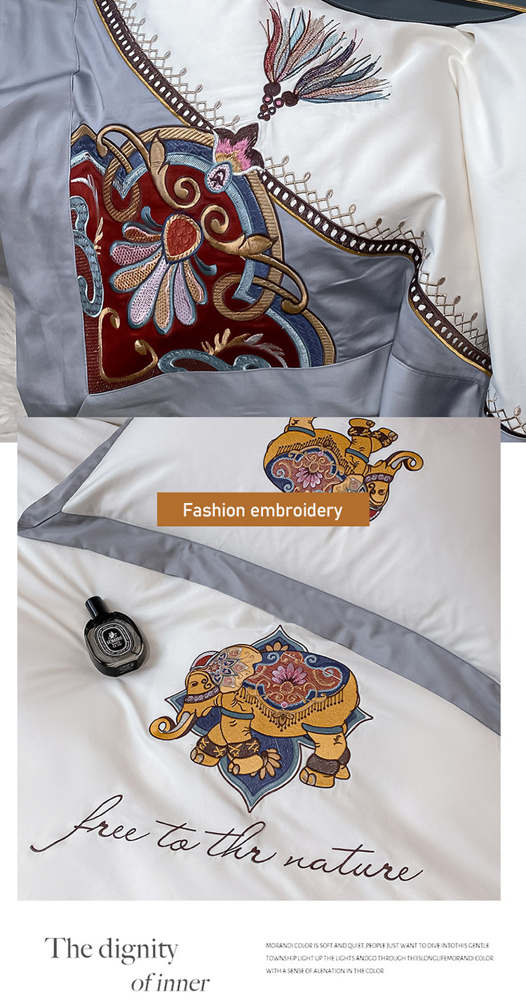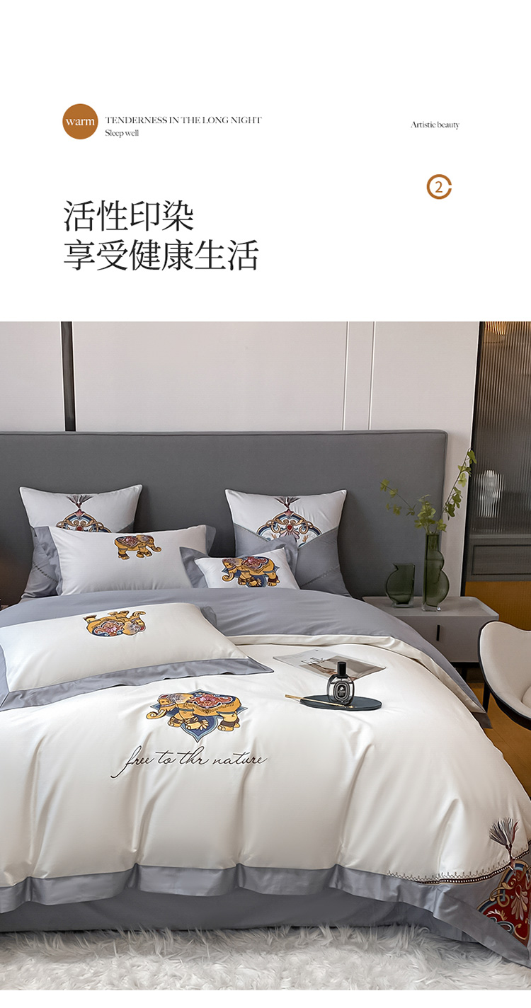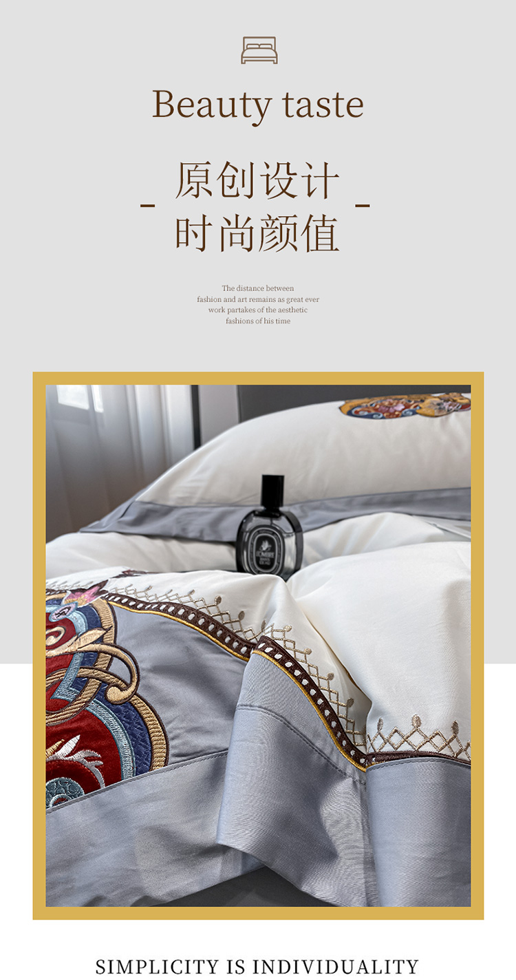 铭动 2023新款100支长绒棉四件套 共舞-典雅白