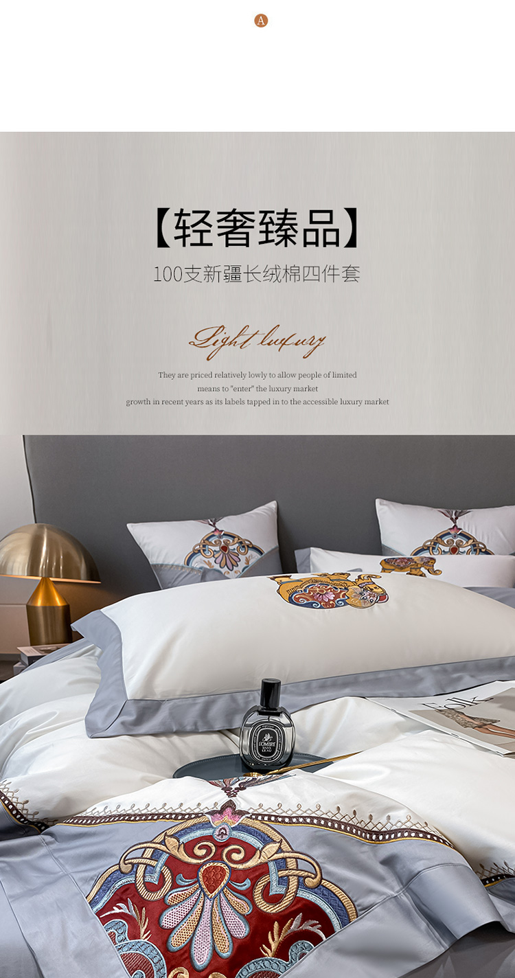 商品名称:铭动 2023新款100支长绒棉四件套 共舞-典雅白