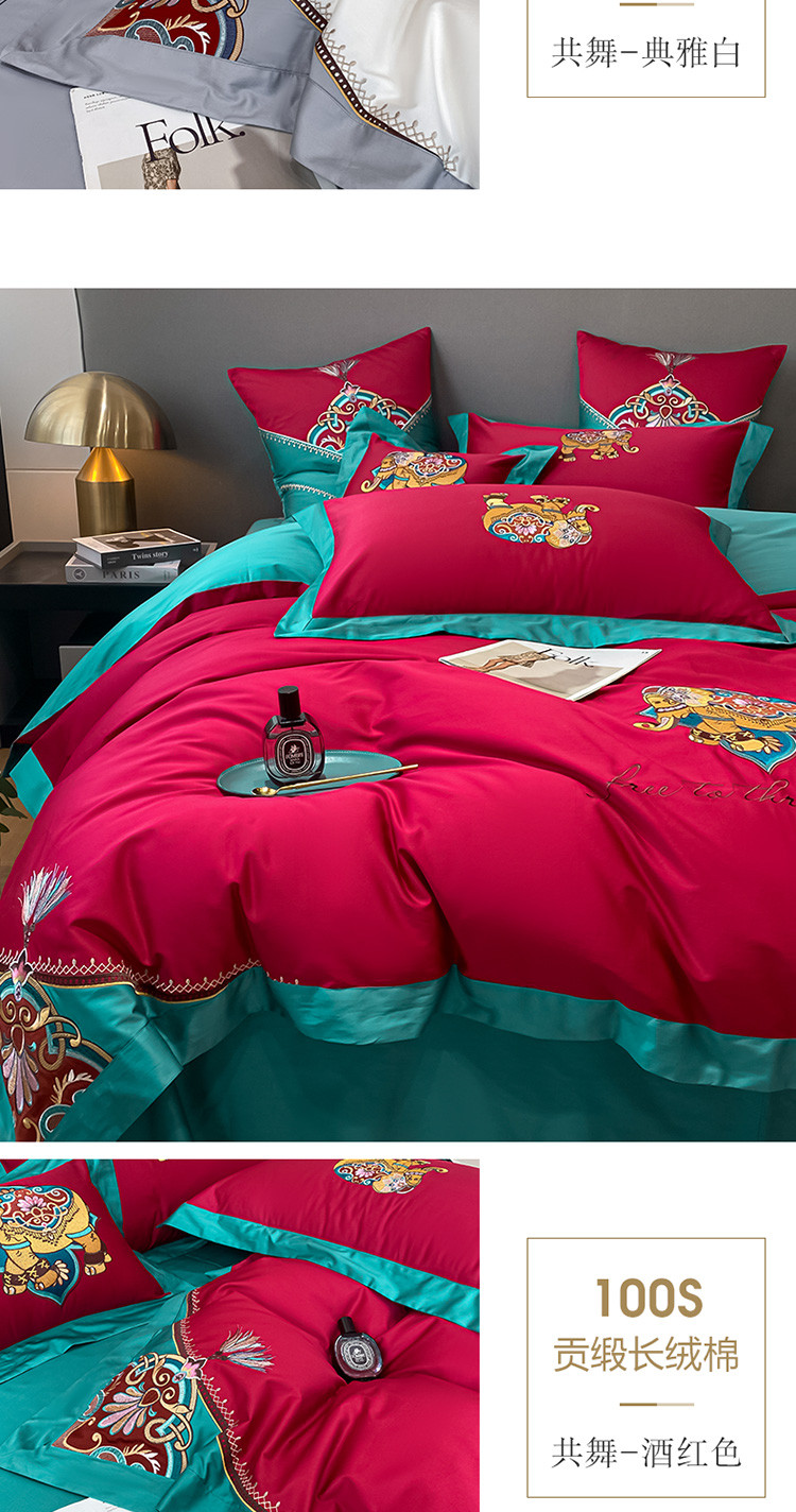 (总)铭动2023新款高克重牛奶绒刺绣款婚庆大红色新婚四件套,花嫁,倾心