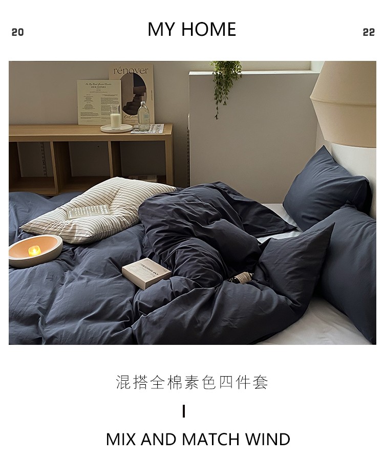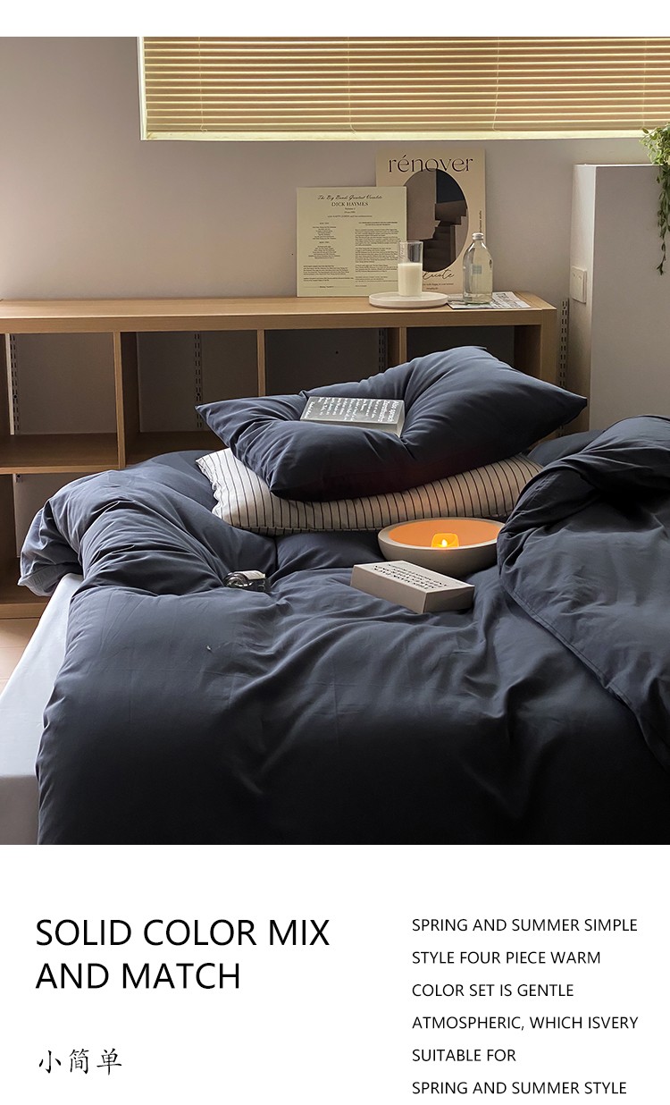 北欧风ins纯棉水洗棉床四件套全棉简约被套床单上三件套床笠