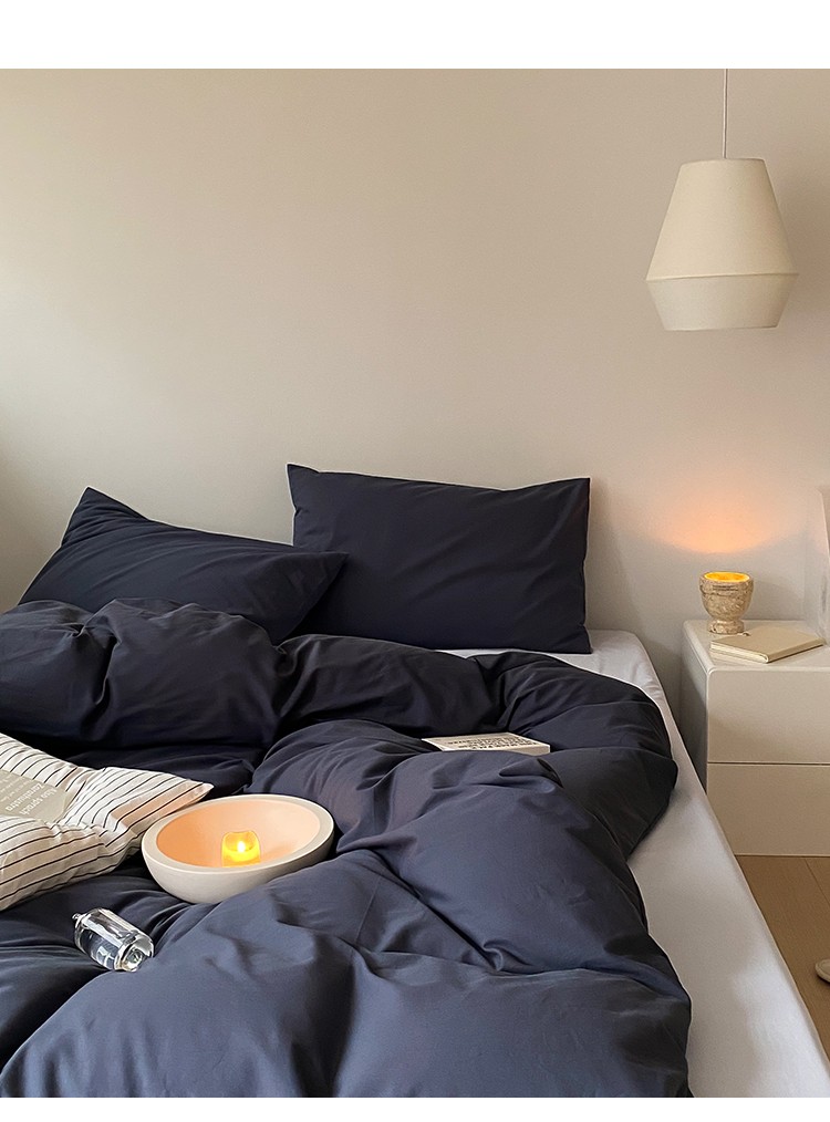 北欧风ins纯棉水洗棉床四件套全棉简约被套床单上三件套床笠,白色+藏青,藏青+浅蓝,鹅黄+螺旋藻绿,鹅黄+牛油果,螺旋藻绿+鹅黄,千夏紫+水貂灰,千夏紫+薇薇紫,薇薇紫+浅灰,浅蓝+鹅黄,浅蓝+白色,浅蓝+藏青