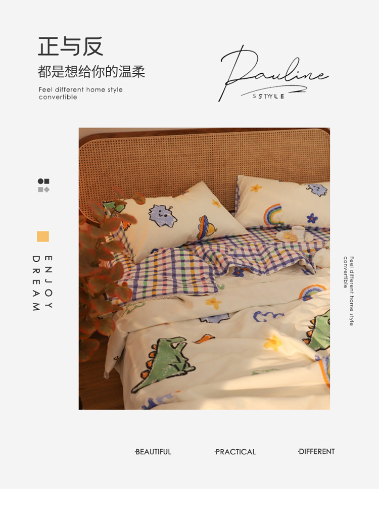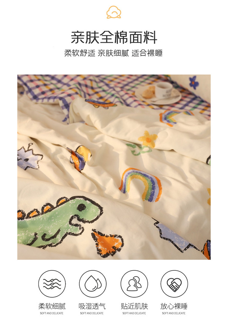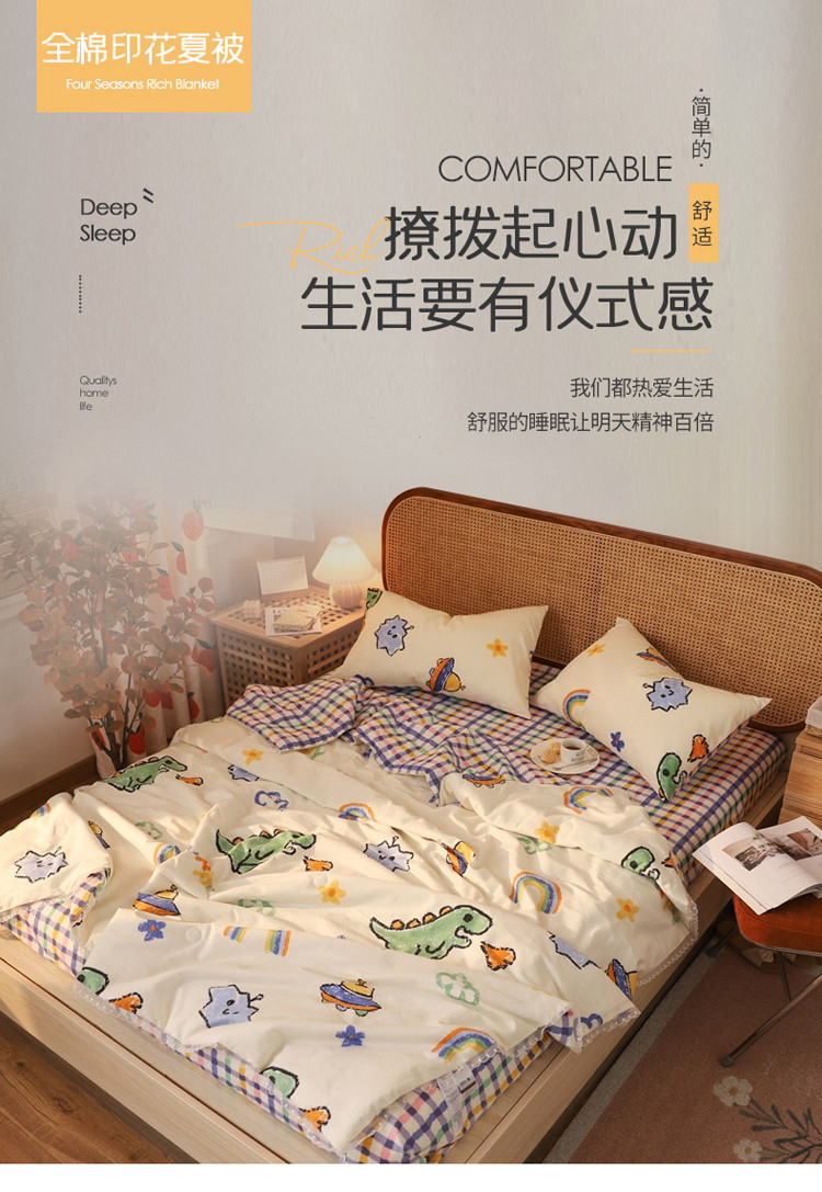 • 91家纺网 家纺一手货源 找家纺 寐居 2022新款全棉13370夏被四件套 恐龙