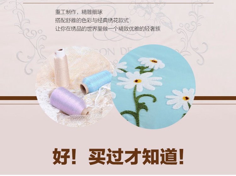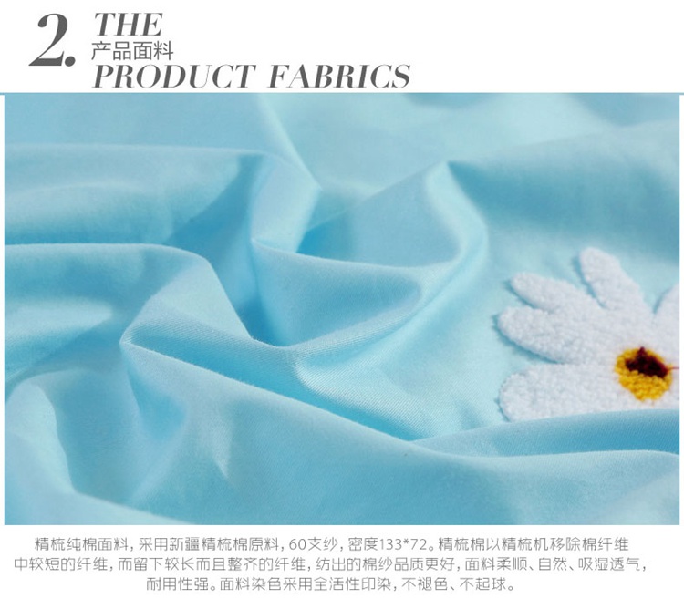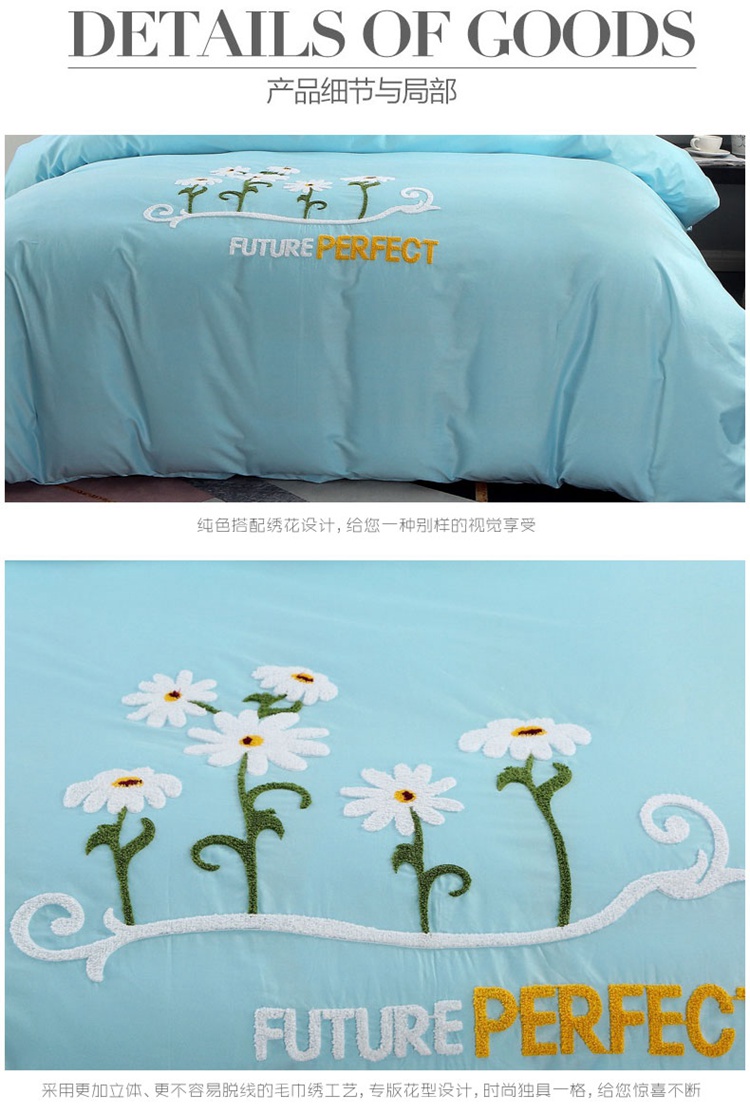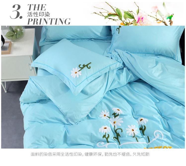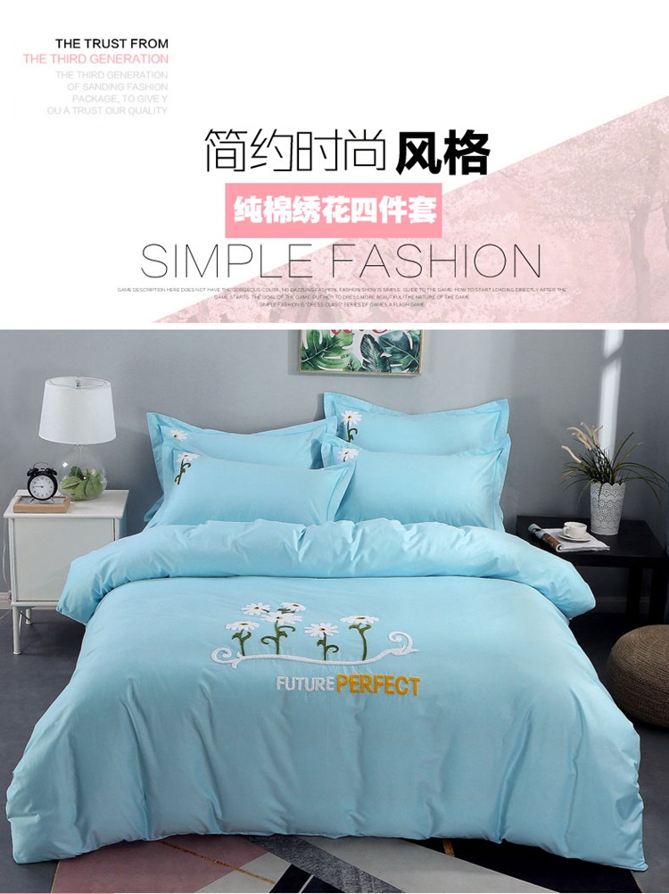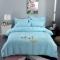 2022晶缦全棉13372纯色毛巾绣绣花四件套 夏花绽放天蓝