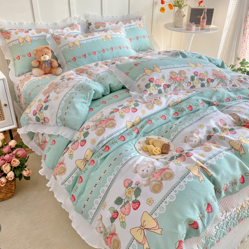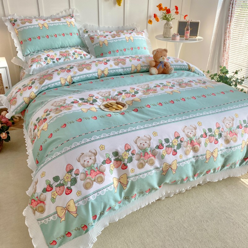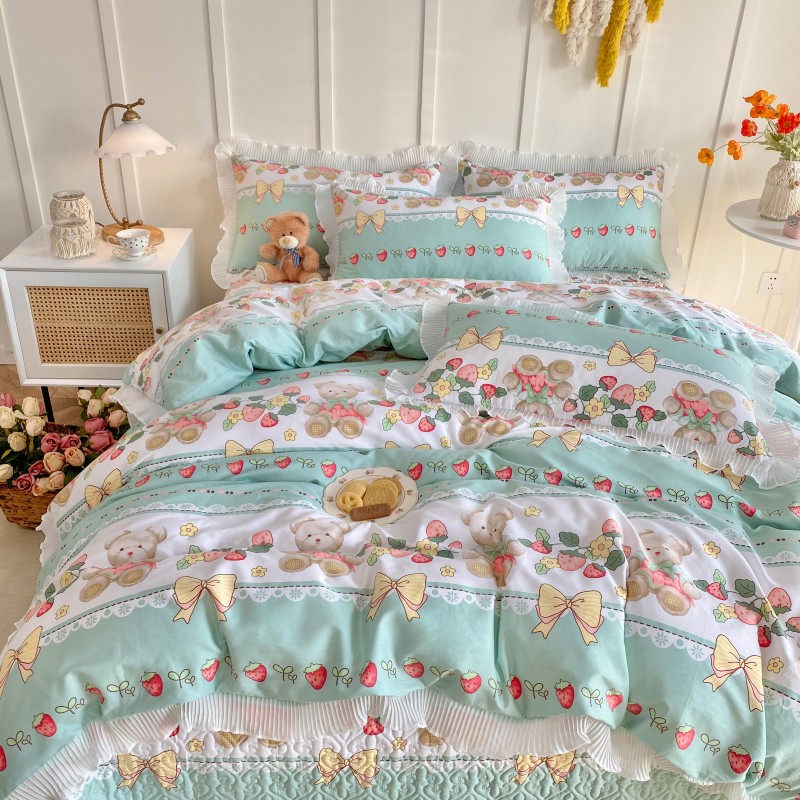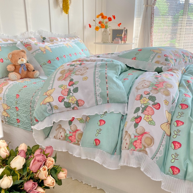 星尚 2022新款全棉夹棉床盖仙女系四件套 萌萌小熊