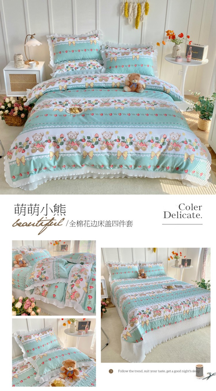 商品名称:星尚 2022新款全棉夹棉床盖仙女系四件套 萌萌小熊