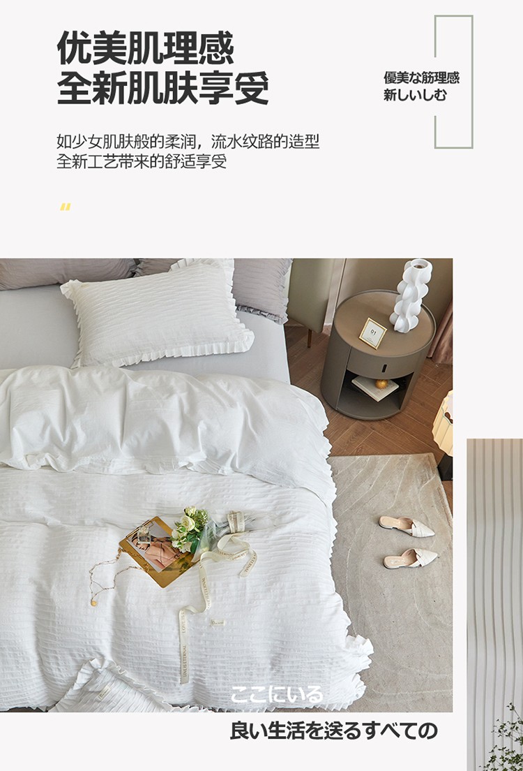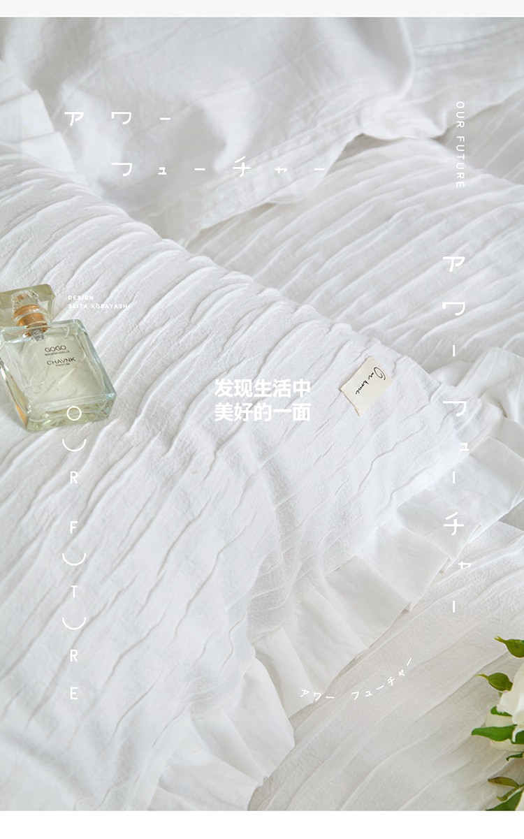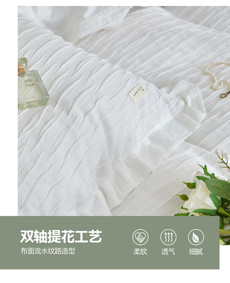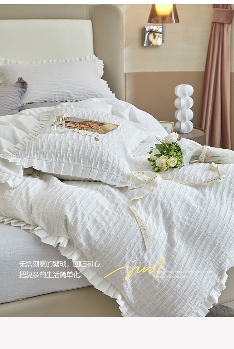 2023直播爆款水洗棉四件套水波纹系列蓦然-水波纹纯白