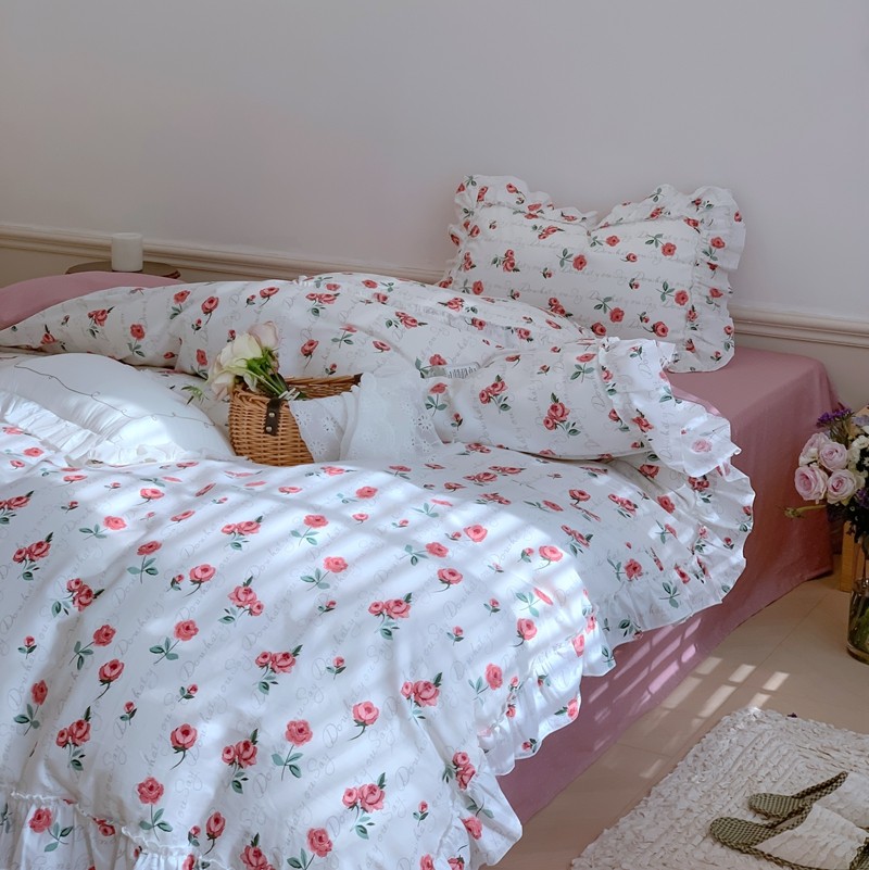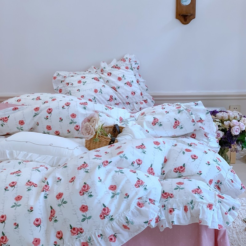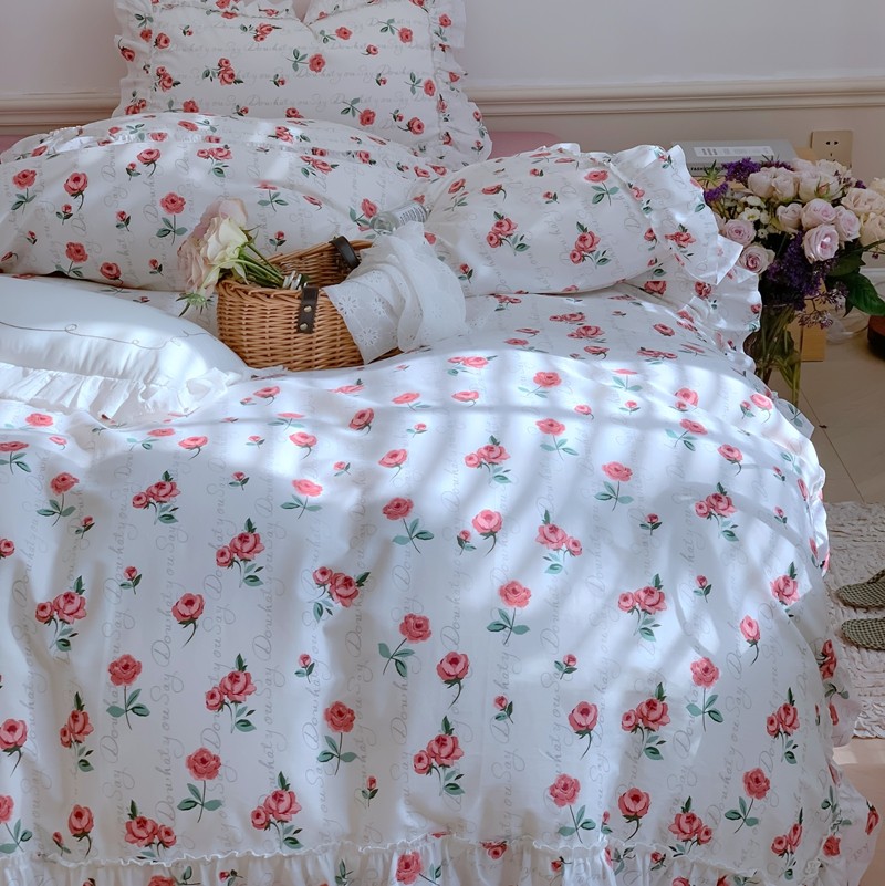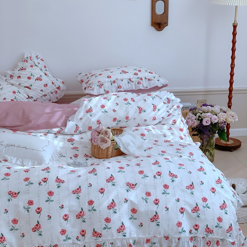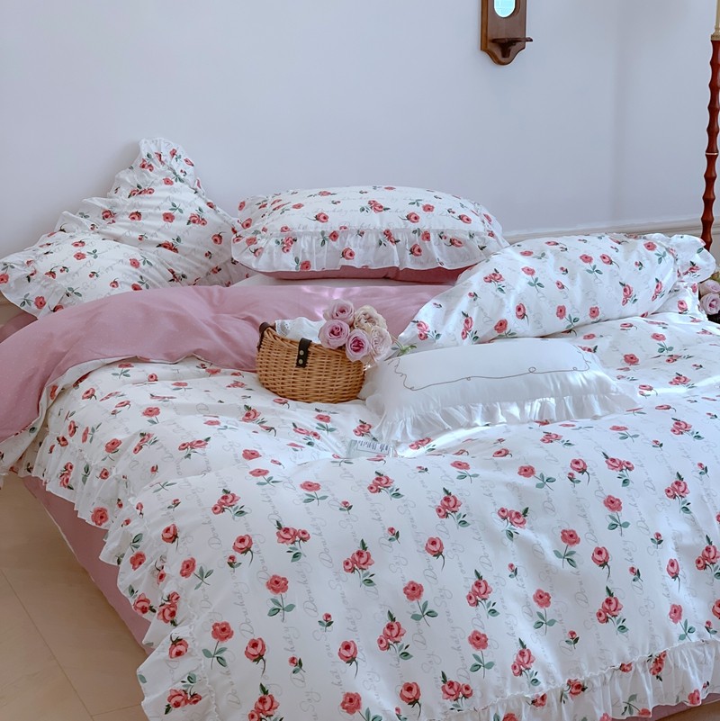昔可2022新款复古花花边四件套法式恋恋玫瑰