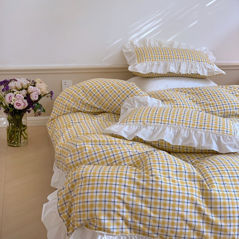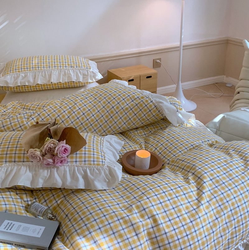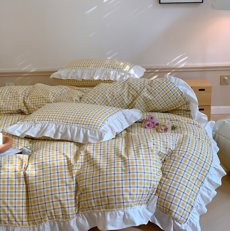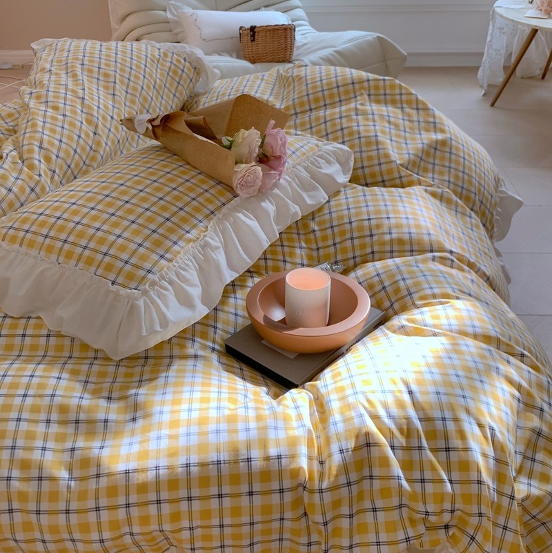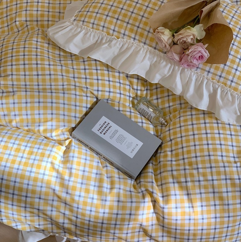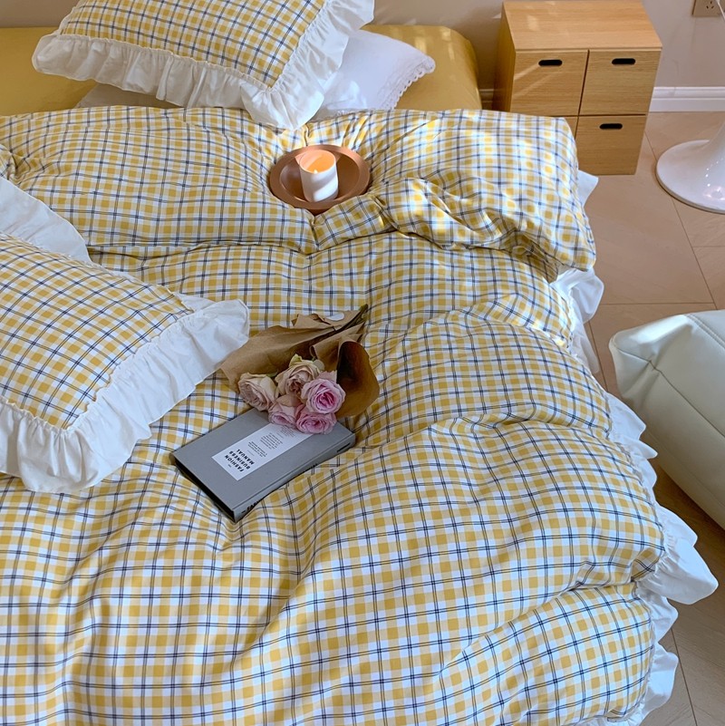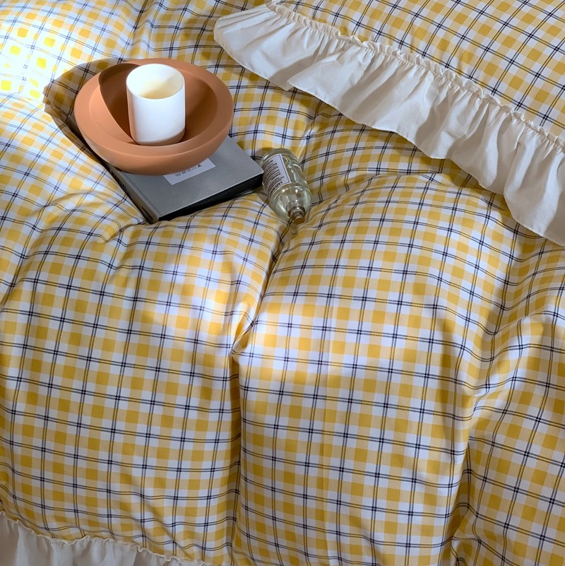 商品名称:昔可2022新款花边格子系列四件套 日落黄格