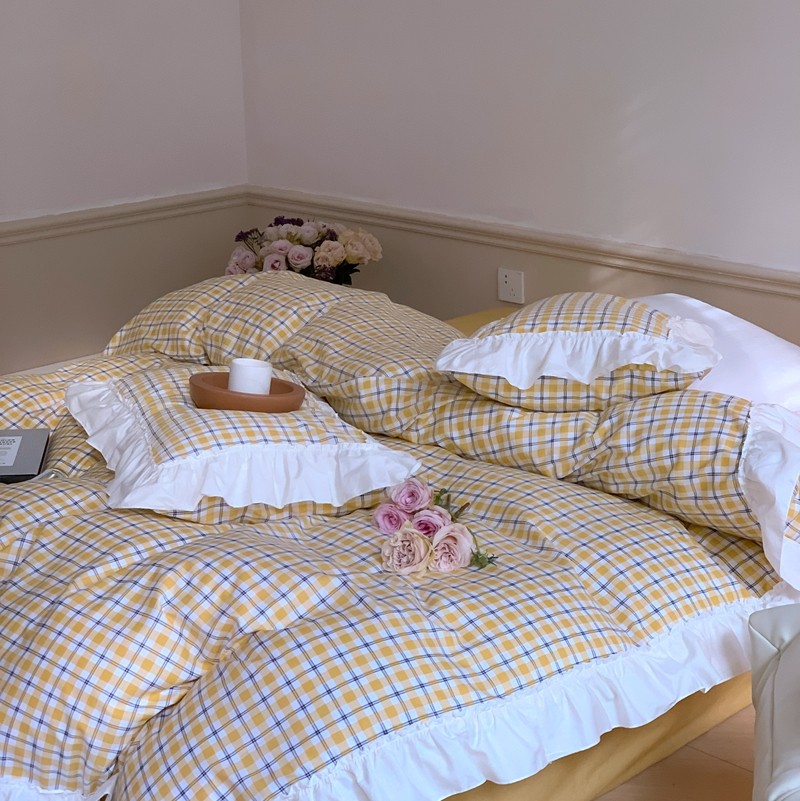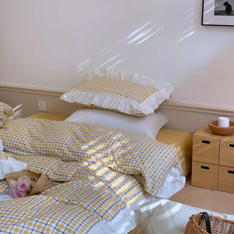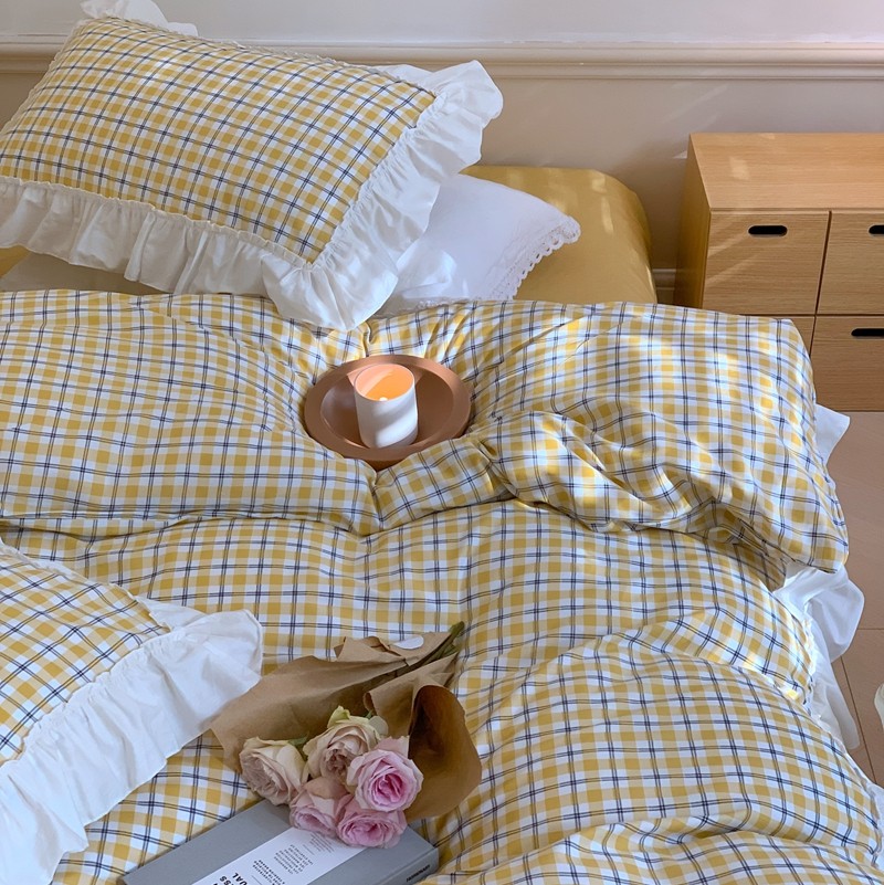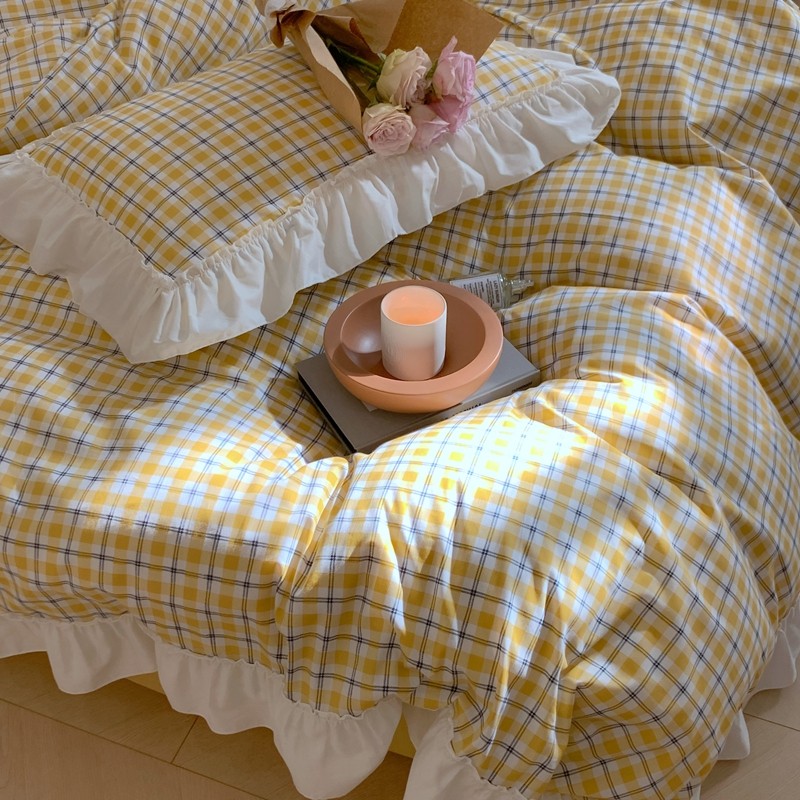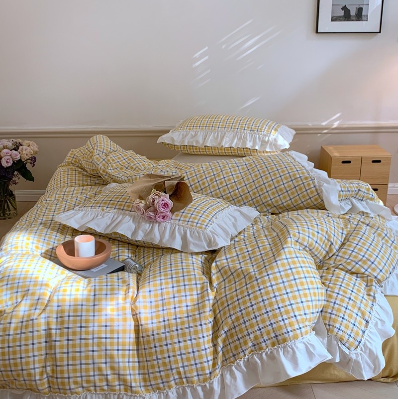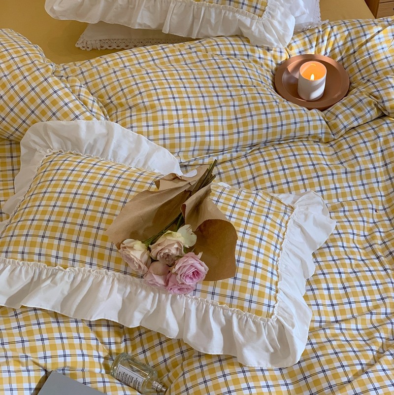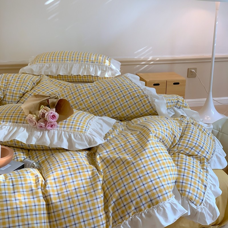 商品名称:昔可2022新款花边格子系列四件套 日落黄格