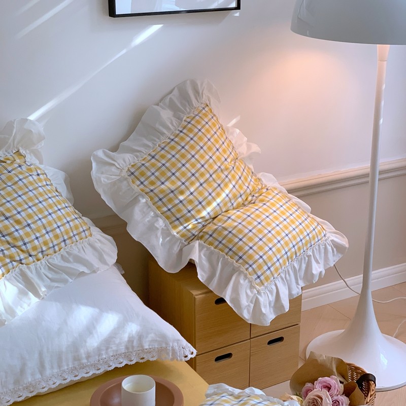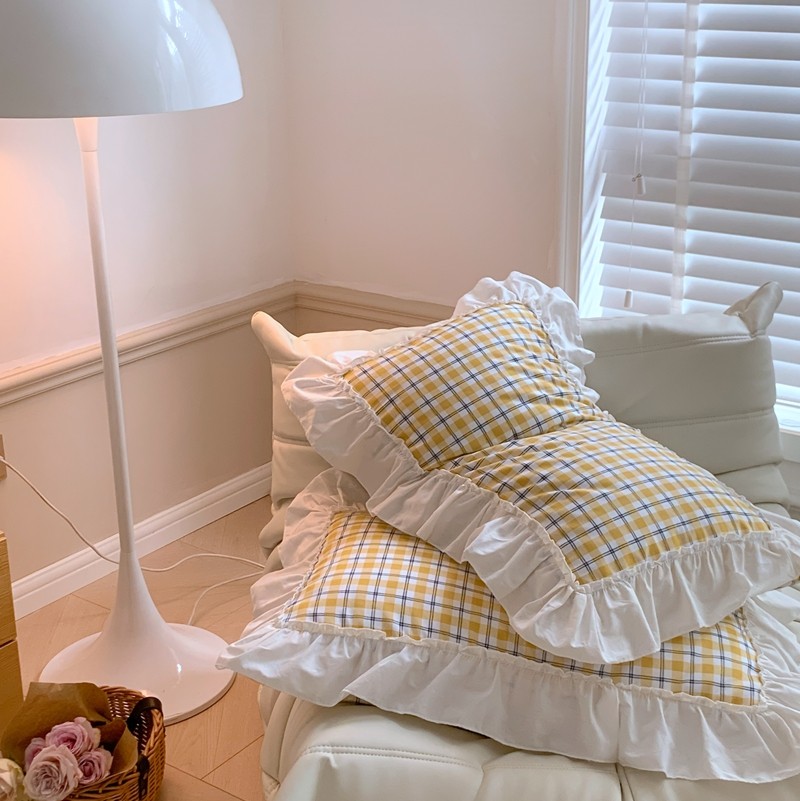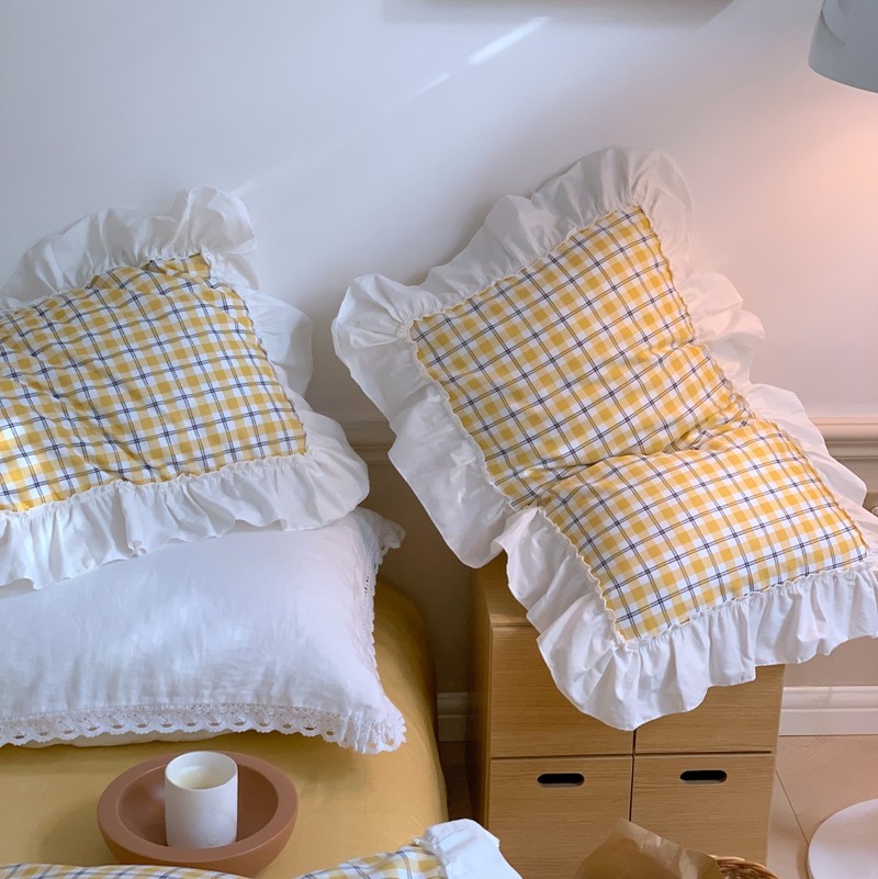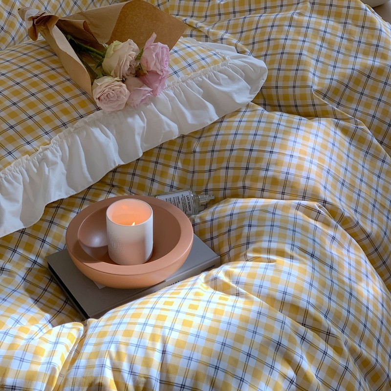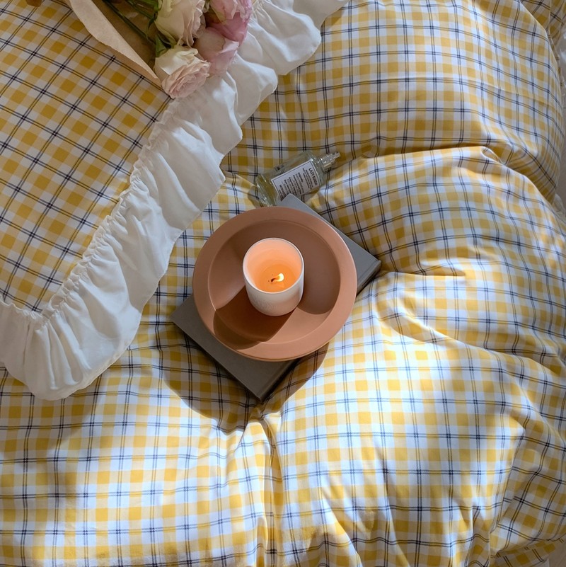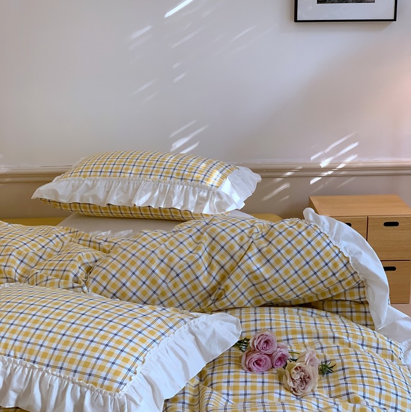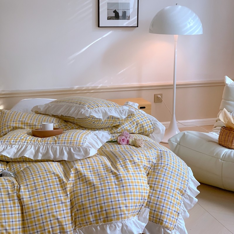 商品名称:昔可2022新款花边格子系列四件套 日落黄格