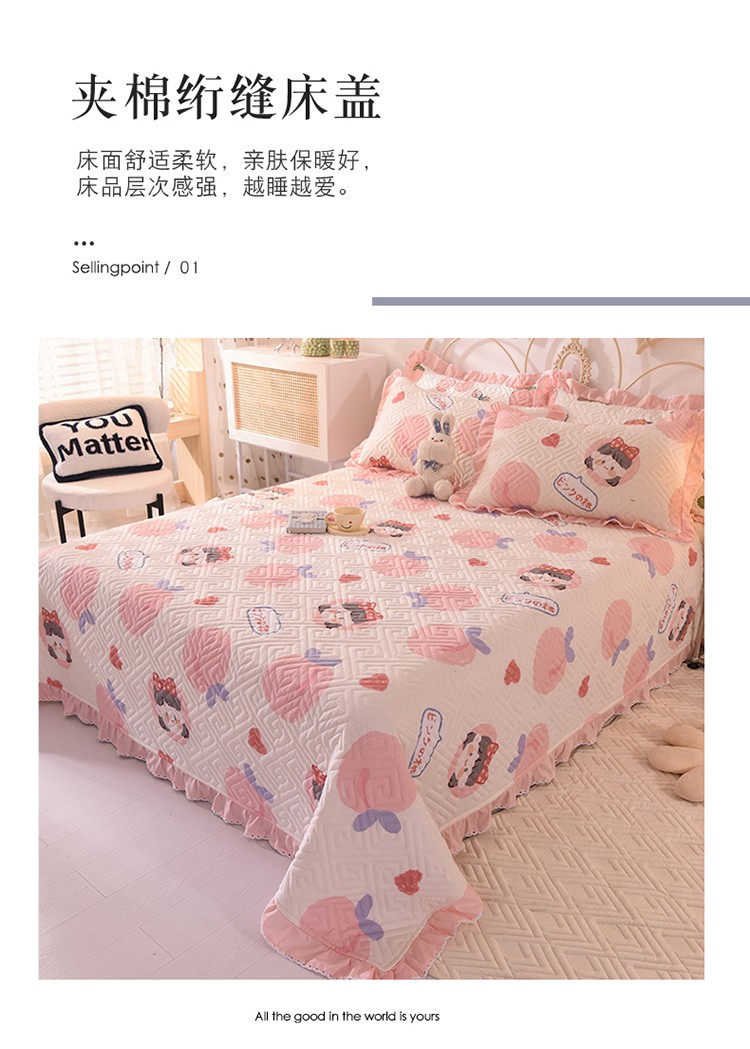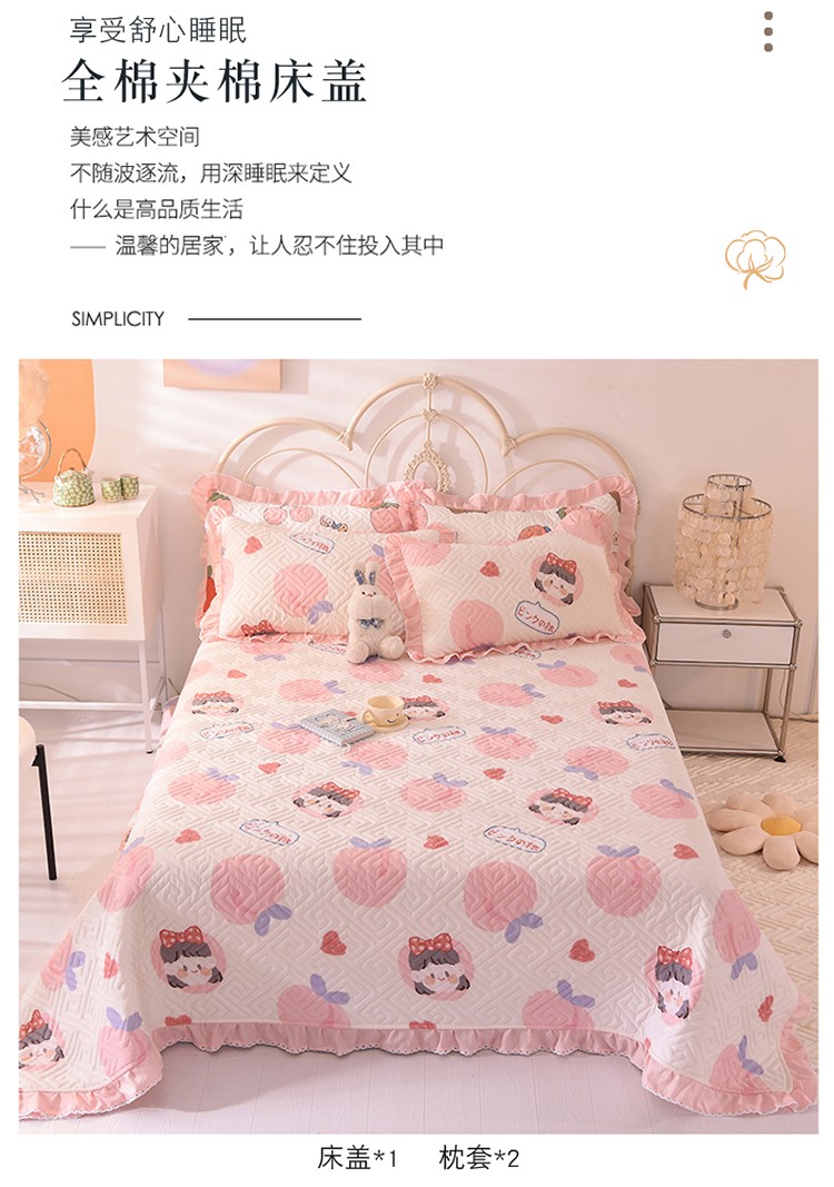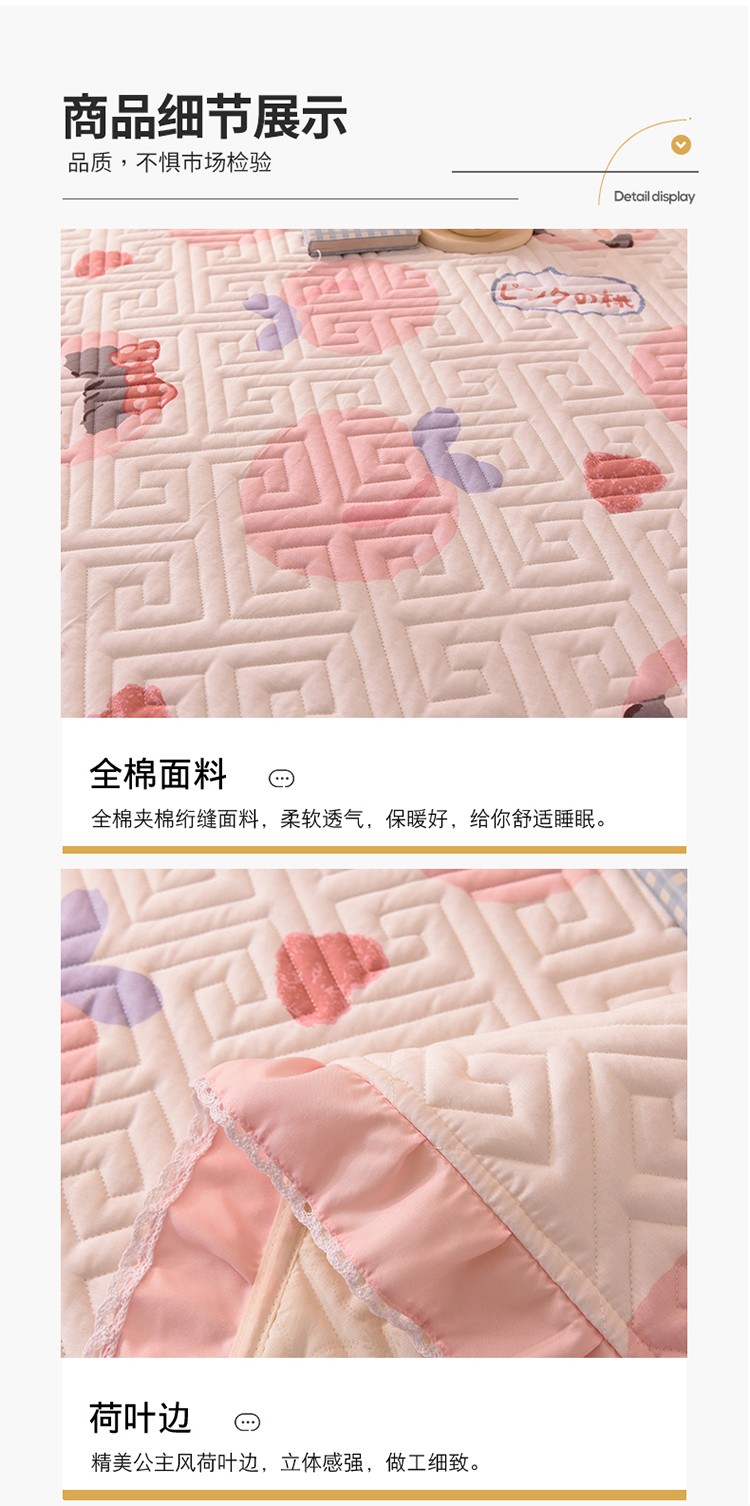 当前位置: 91家纺网 > 商品网购 > 床上用品 > 凉席 > 其他凉席 > 美达家纺 新款全棉夹棉防滑可机洗花边床盖款软席 白桃女孩