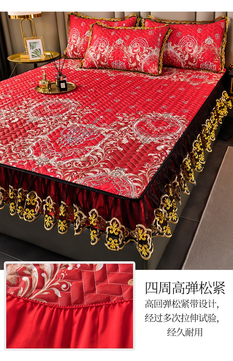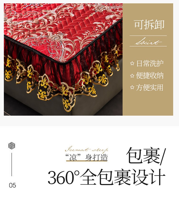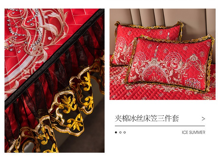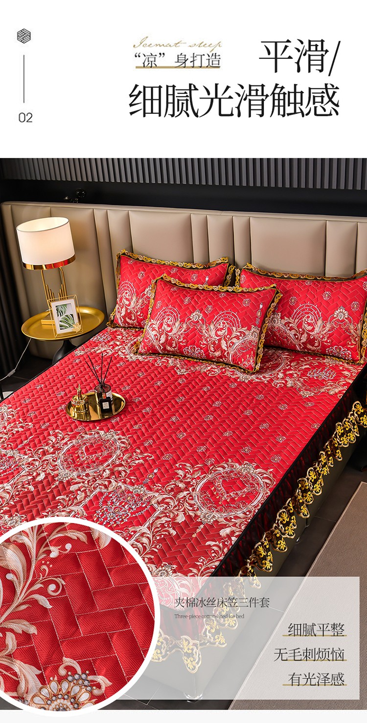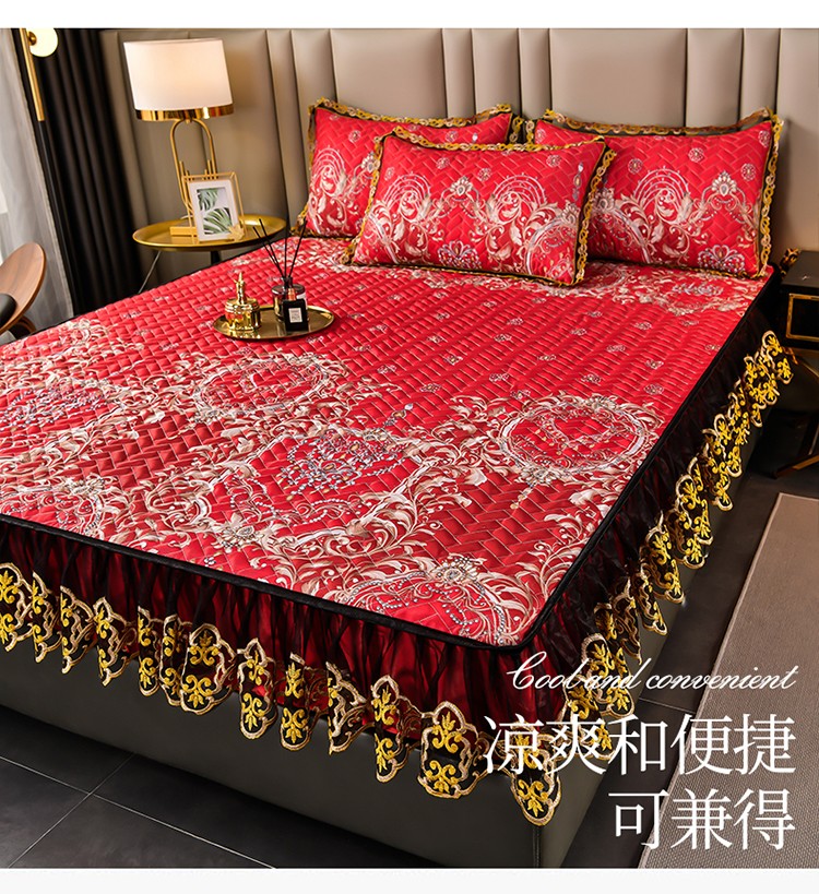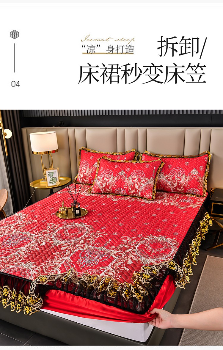 商品名称:迪梦思 2022新款蕾丝花边可拆卸床笠冰丝凉席三件套 喜结良缘