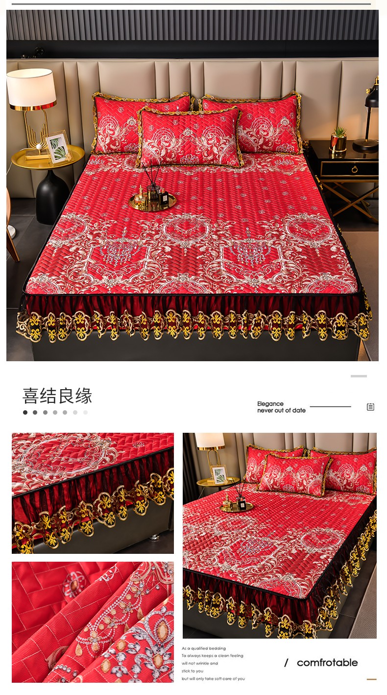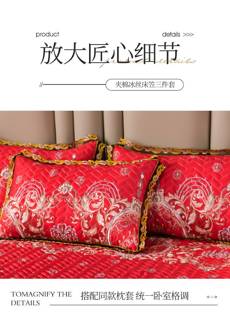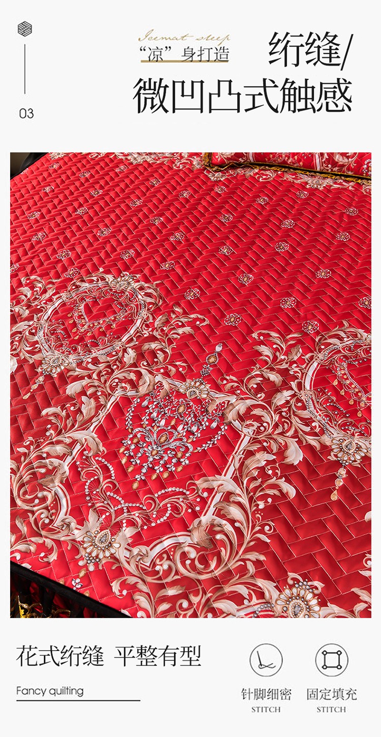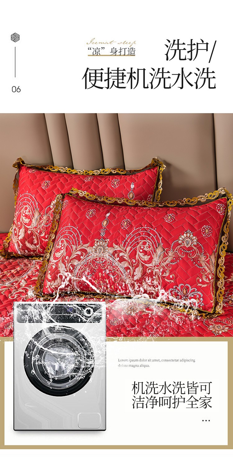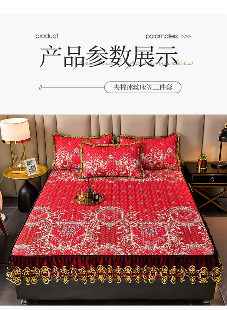 商品名称:迪梦思 2022新款蕾丝花边可拆卸床笠冰丝凉席三件套 喜结良缘