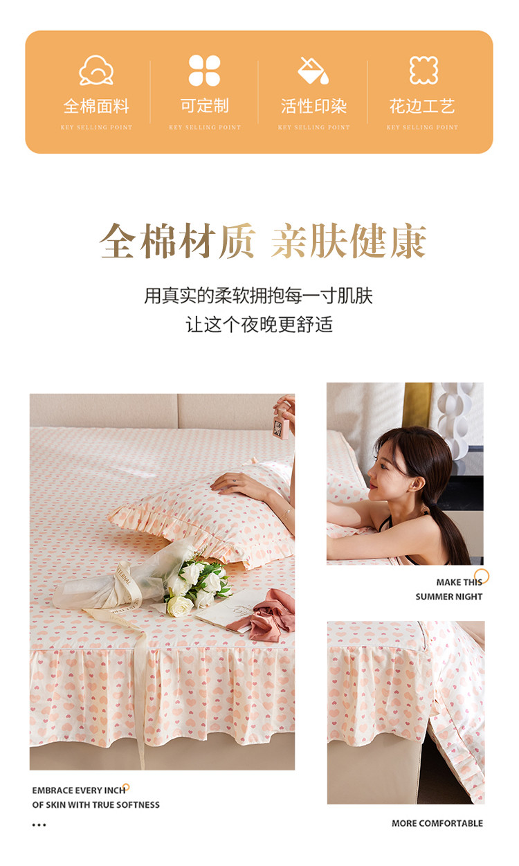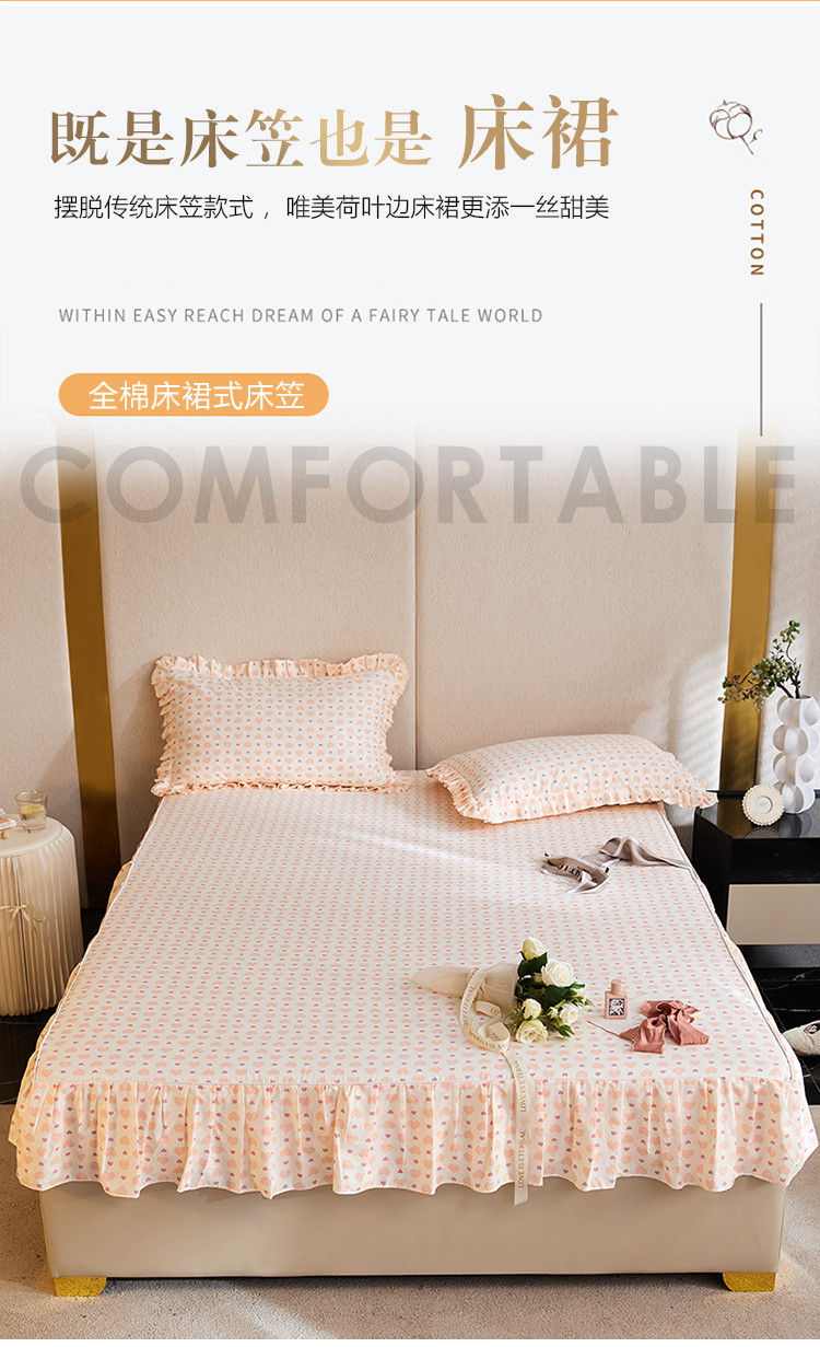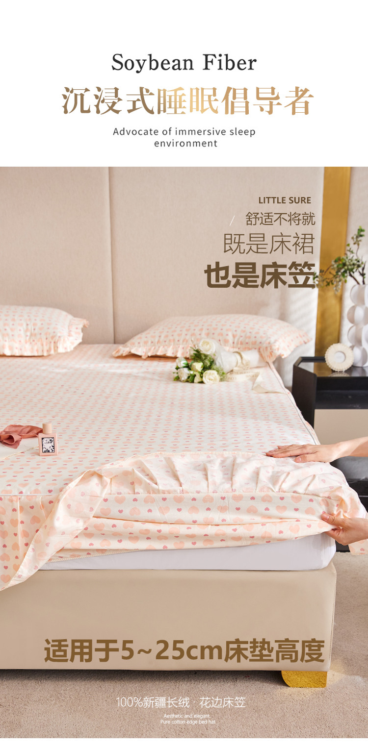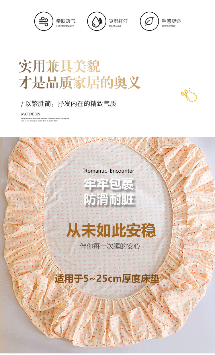 铭动家纺 2023新款纯棉单层花边床笠 心愿