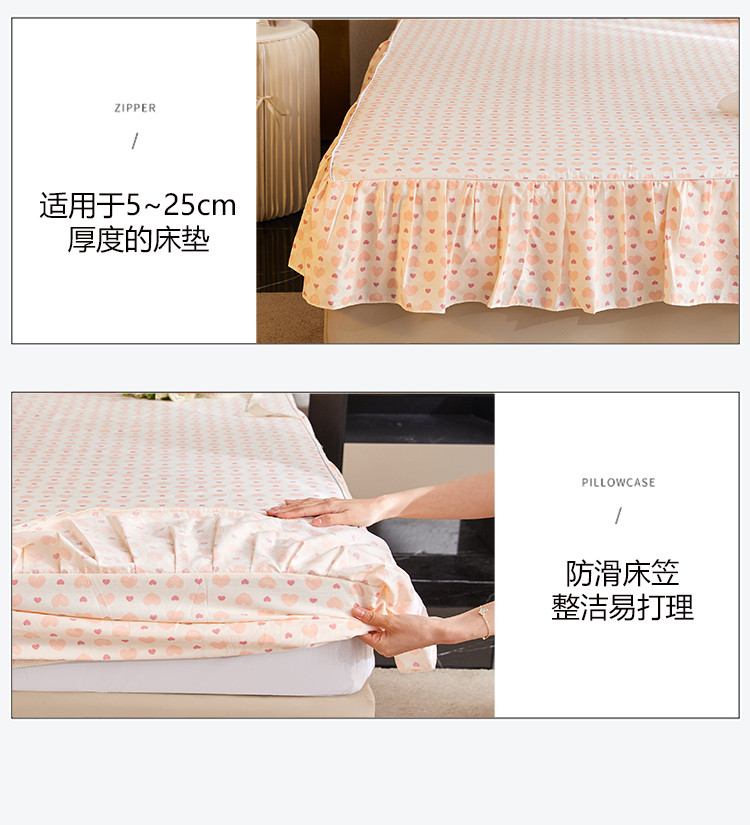 商品名称:铭动家纺 2023新款纯棉单层花边床笠 心愿