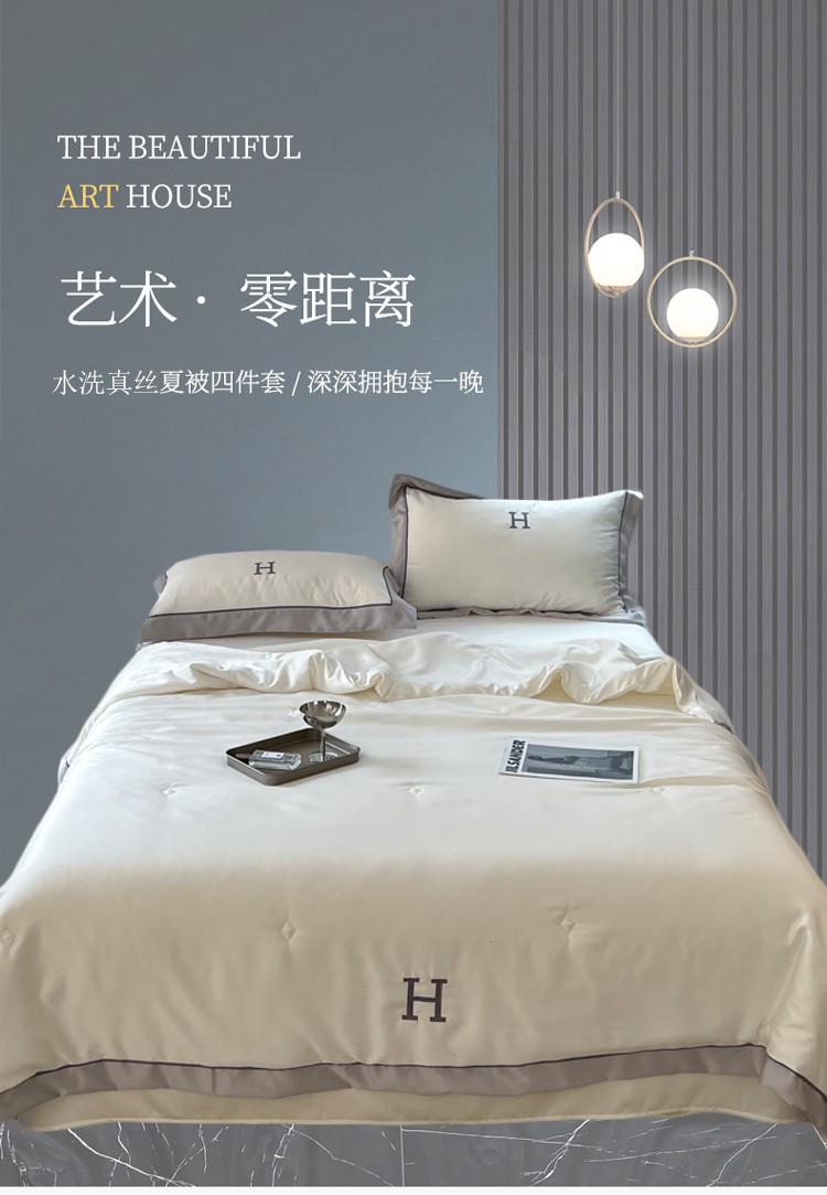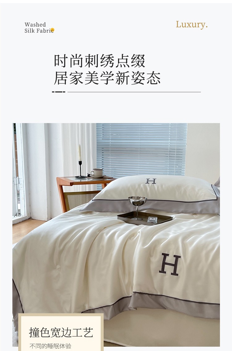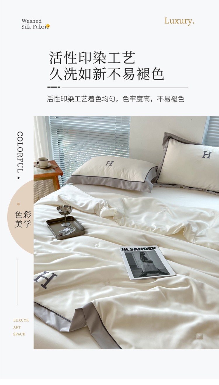 (总)眠屿家纺 2023年新款夏被四件套,爱马橙,丁香紫,海藻绿,琥珀绿,简朴米,锦绣银,孔雀兰,秋香黄,深炫灰,香妃粉