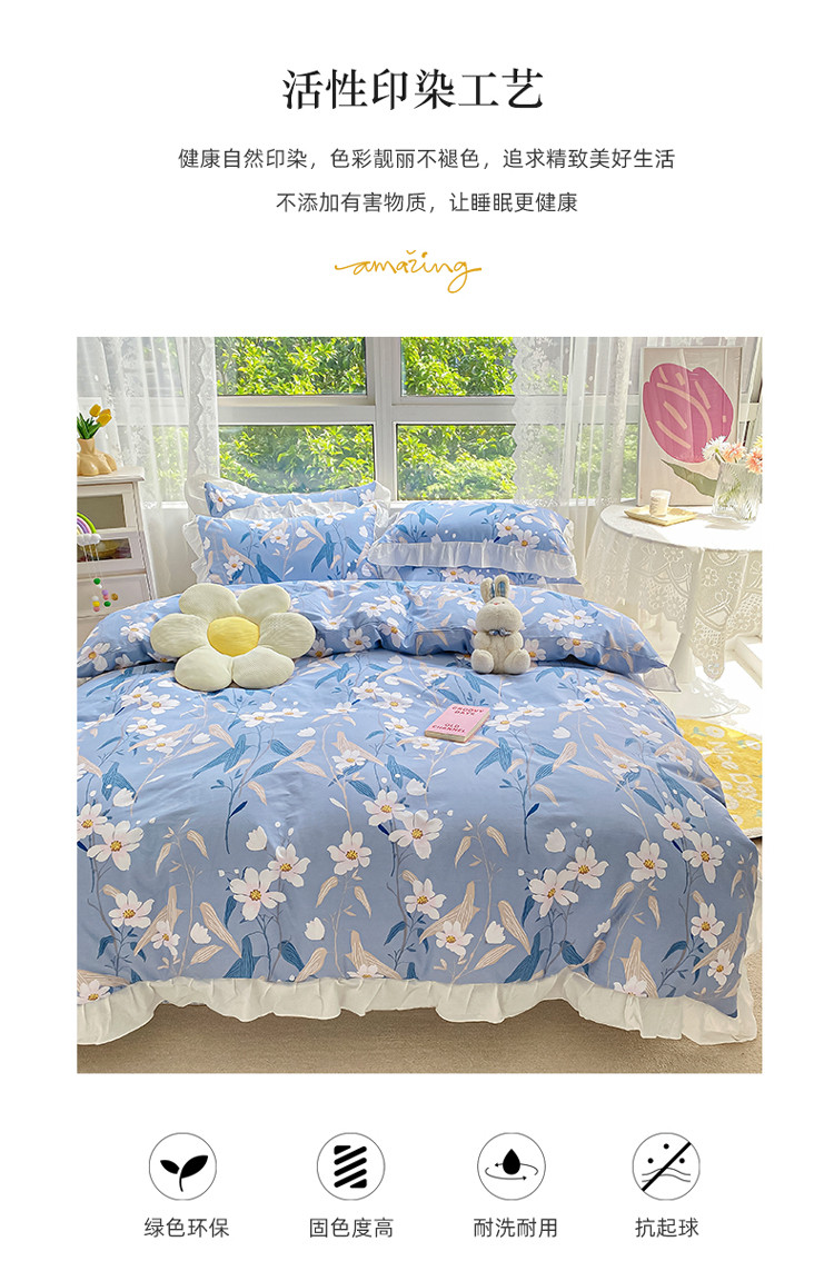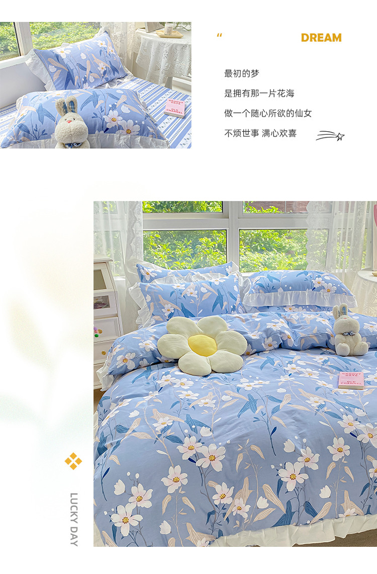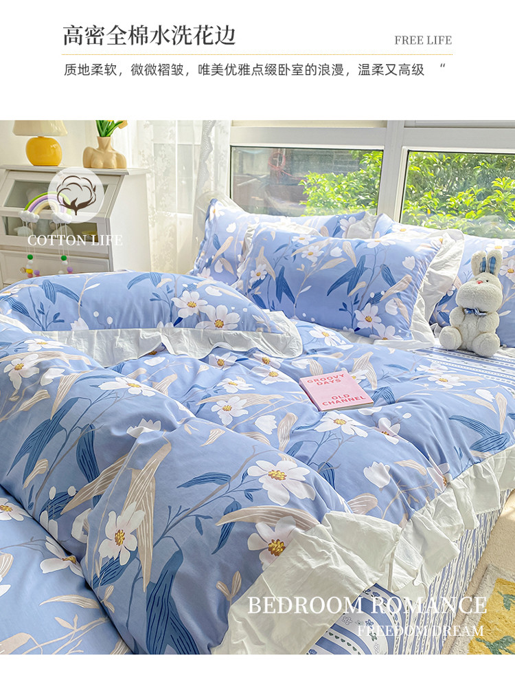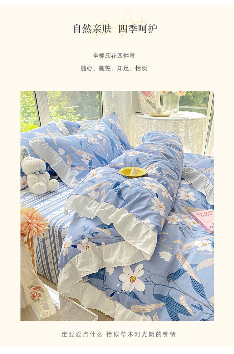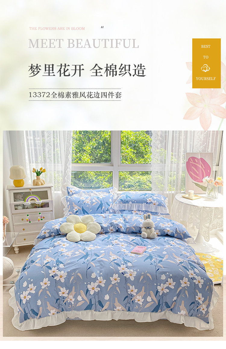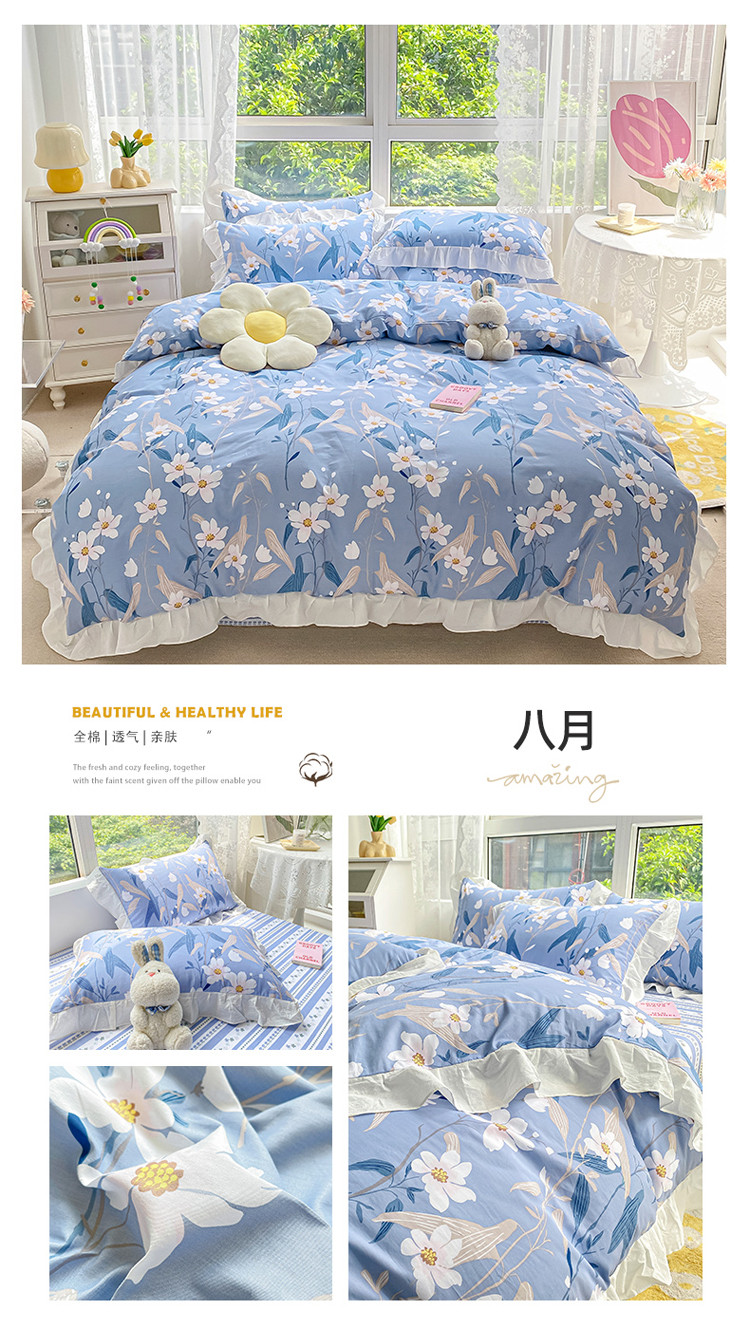 捌月 2024新款全棉素雅风花边款四件套 八月
