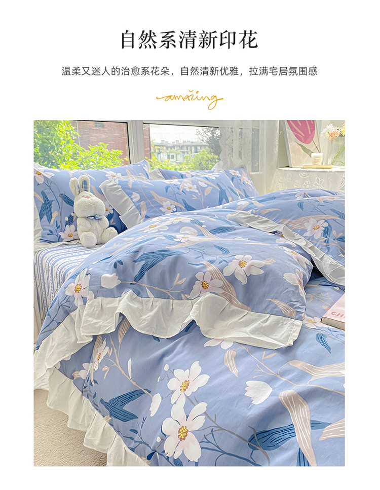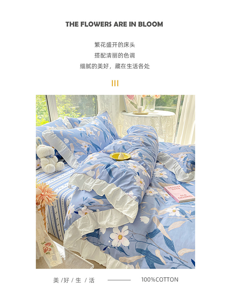 (总)捌月 2025新款13372全棉四件套花园里系列小清新全棉四件套热卖新品,艾美,蓝风铃,蓝汐,流年,魅影,木兰,年华,浅浅,青花瓷,青木,轻颜,韶华,思绪,汐月