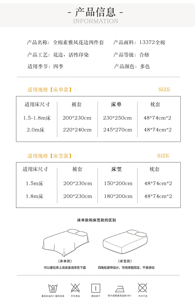 商品名称:捌月 2024新款全棉素雅风花边款四件套 八月