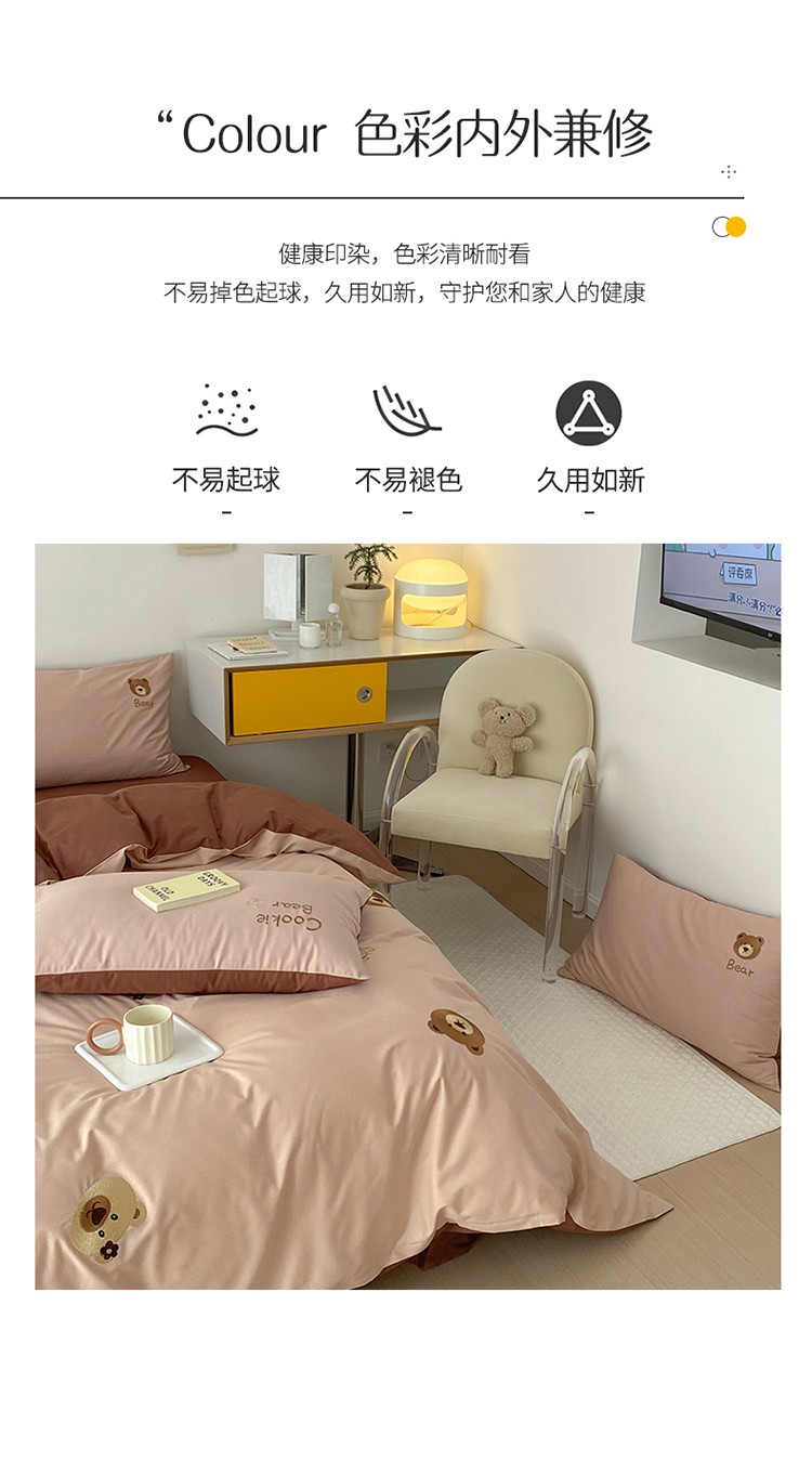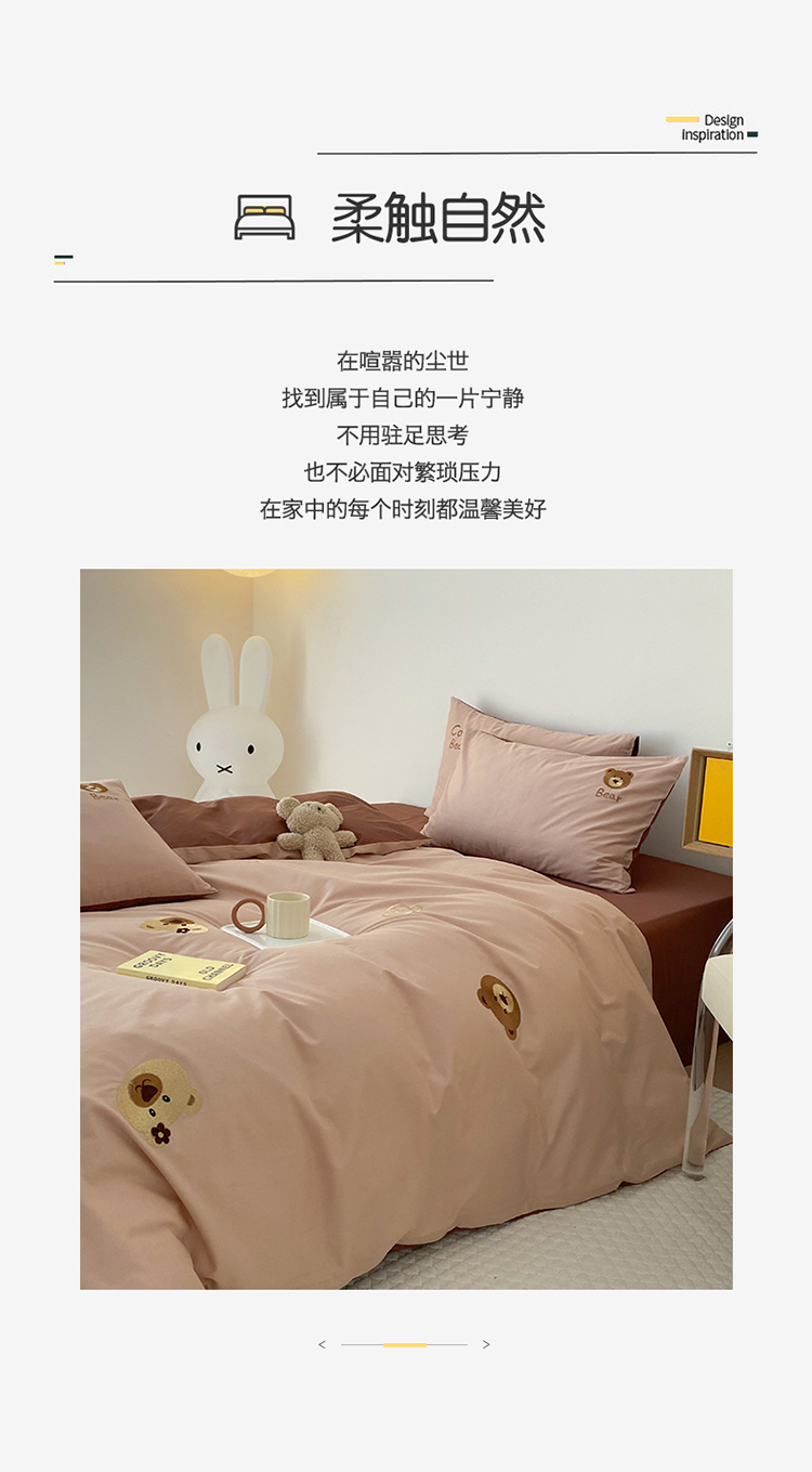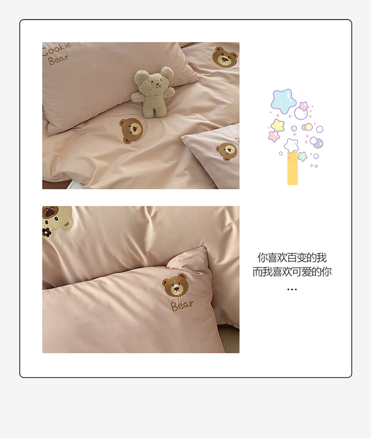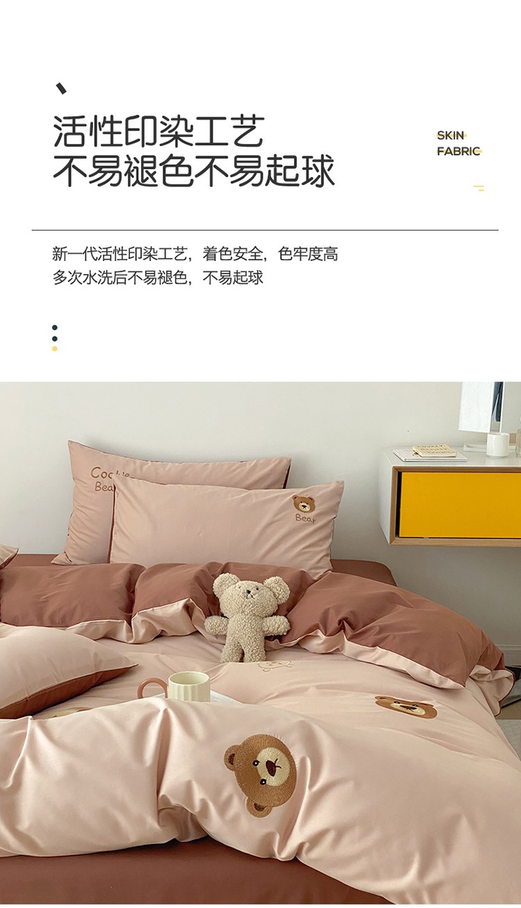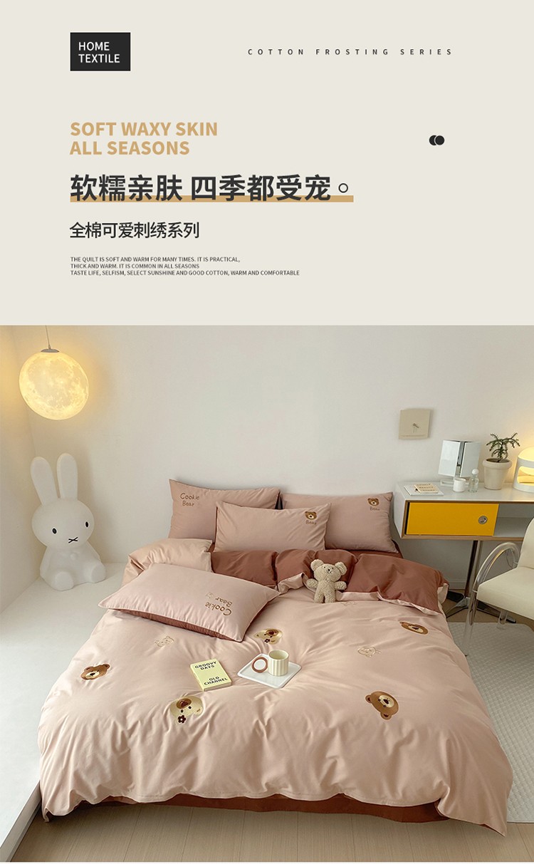 沐棉 2022新款13376全棉刺绣四件套 饼干熊-咖