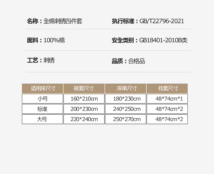 商品名称:沐棉 2022新款13376全棉刺绣四件套 饼干熊-咖