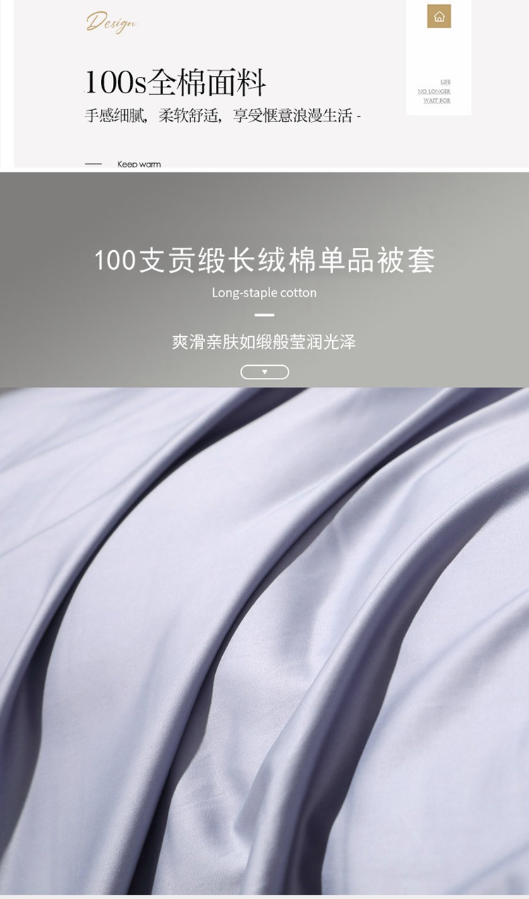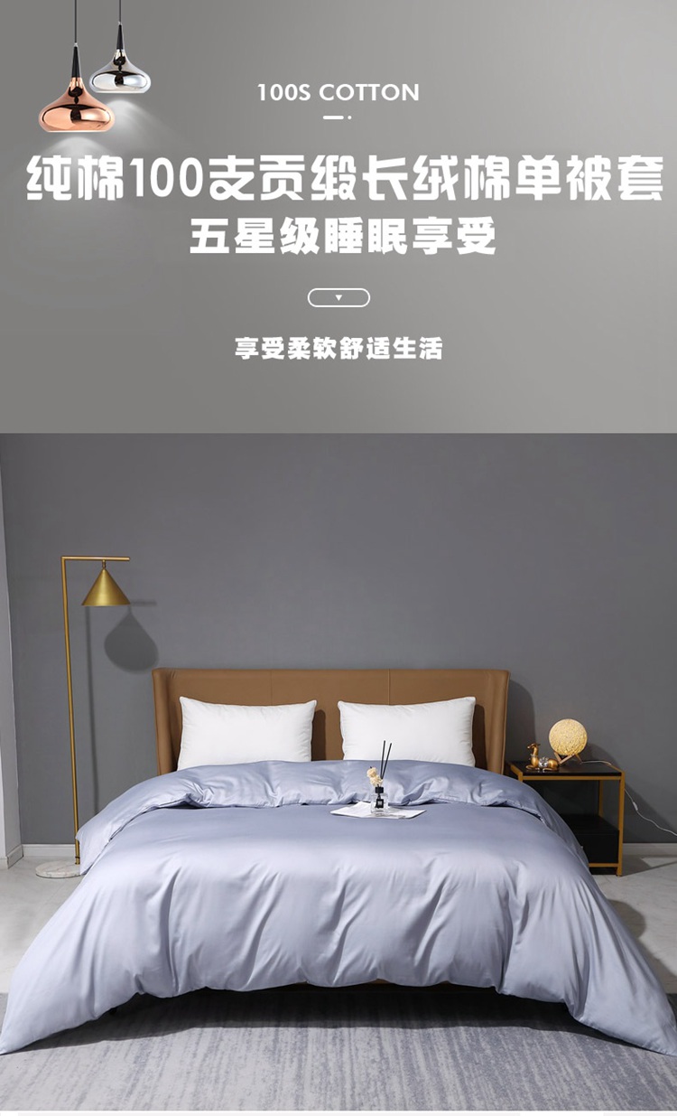 商品名称:2022全棉纯棉50支双股贡缎长绒棉纯色单被套单件品纯沐绫兰灰