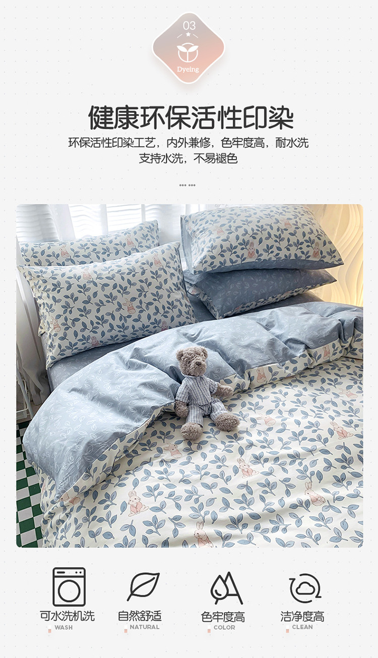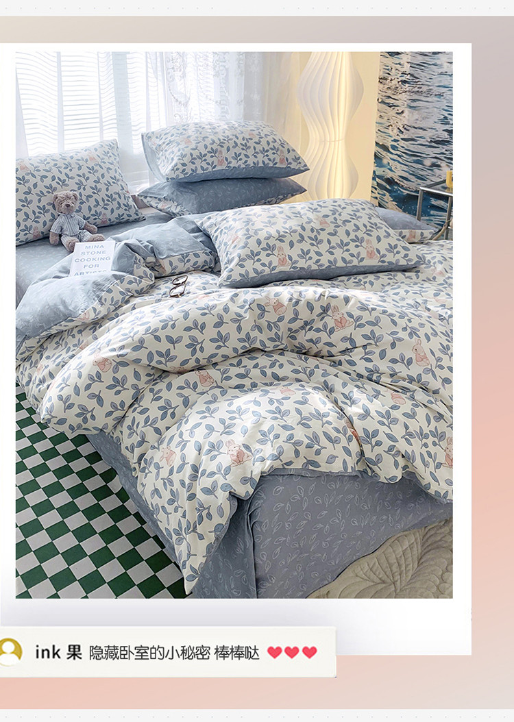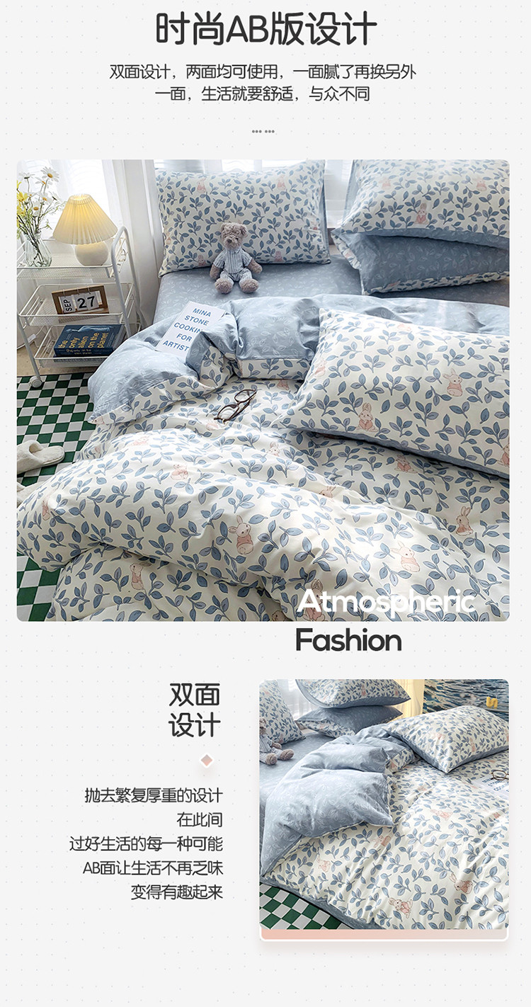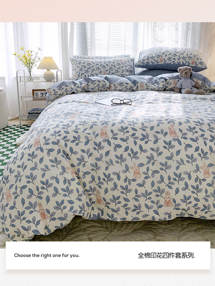 当前位置: 91家纺网 > 商品网购 > 床品套件 > 四件套 > 全棉普通四件套 > 名兮 2022新款AB版清新全棉印花四件套系列 菲菲兔