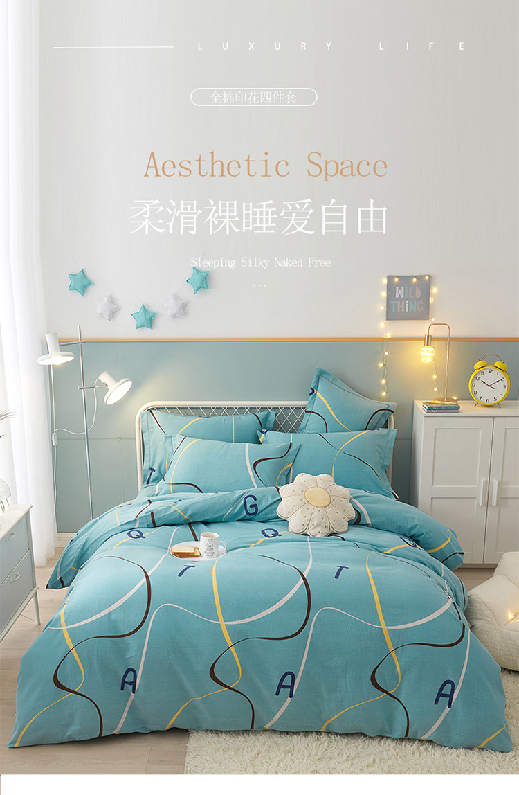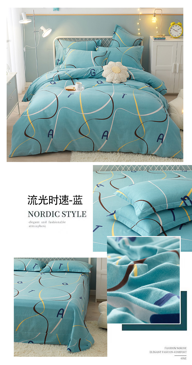 商品名称:金纱玉纺 2022新款印花加厚磨毛四件套 流光时速-蓝