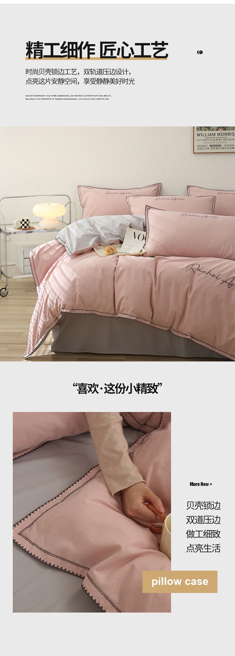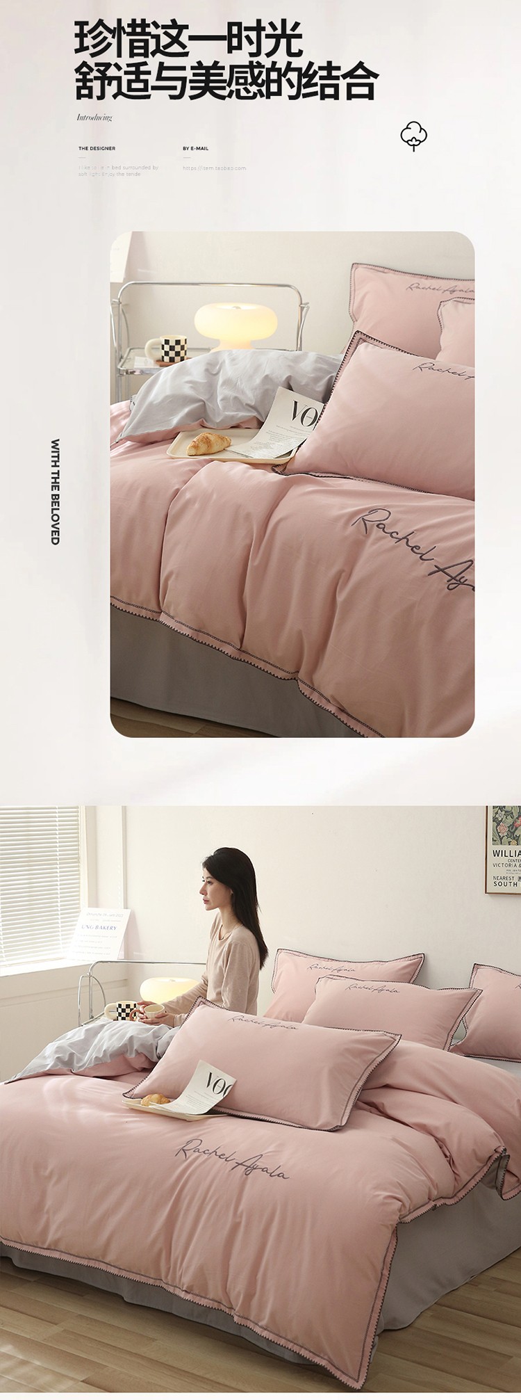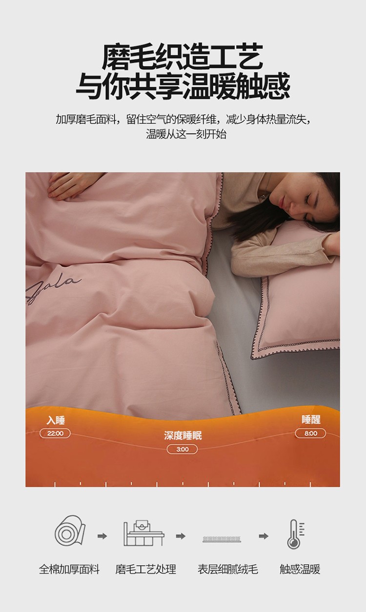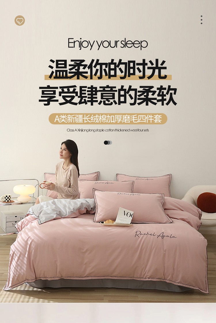 艾莱2023新款A类新疆长绒棉加厚柔顺磨毛四件套瑞秋-烟粉