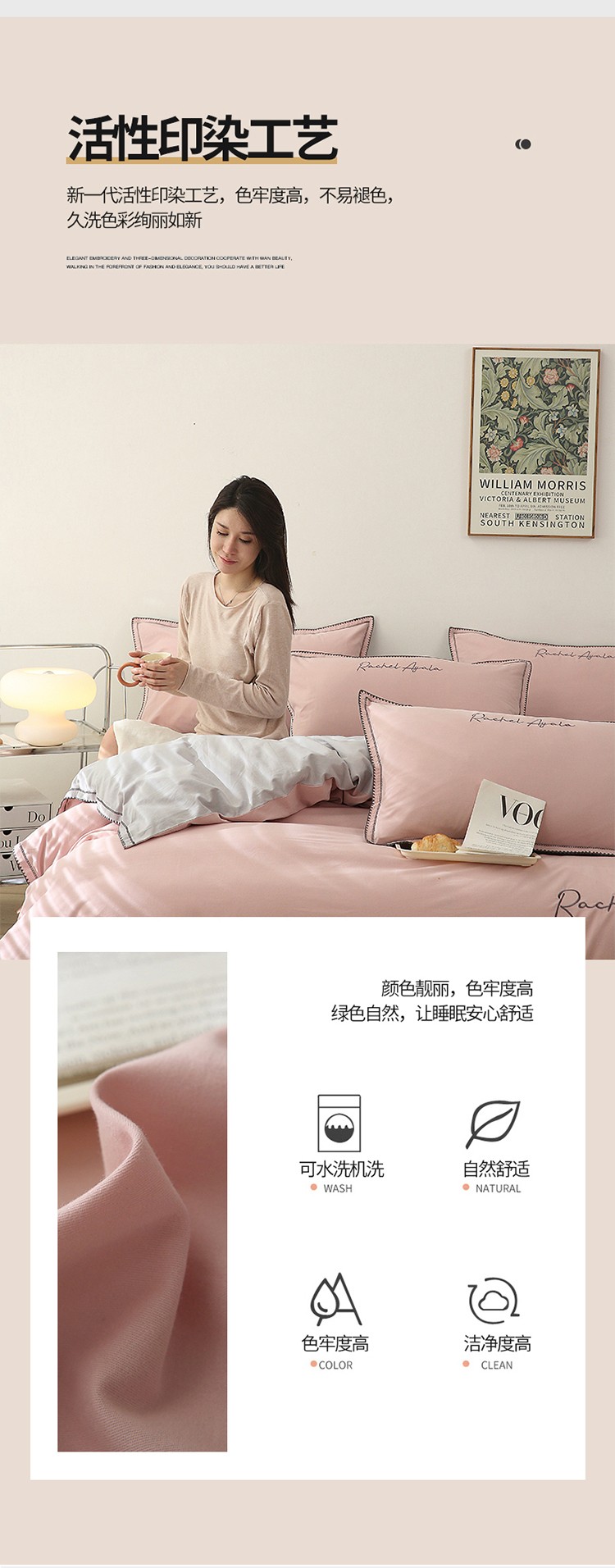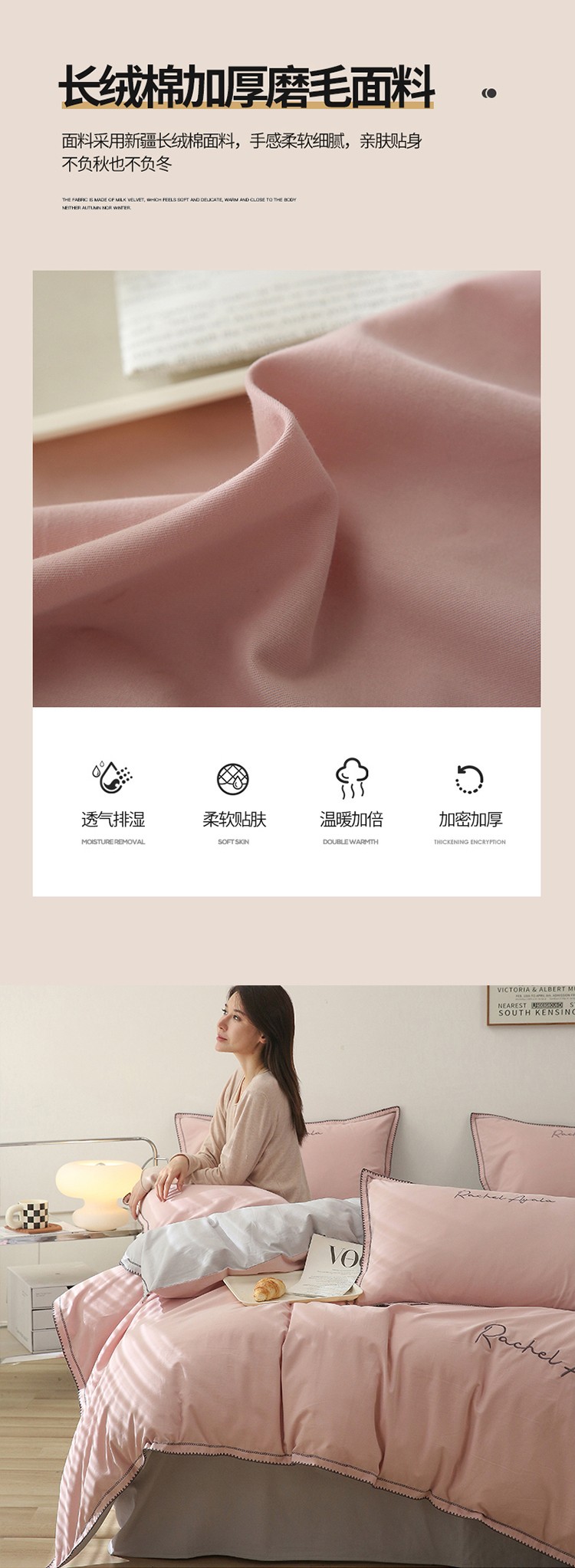 商品名称:艾莱2023新款A类新疆长绒棉加厚柔顺磨毛四件套瑞秋-烟粉