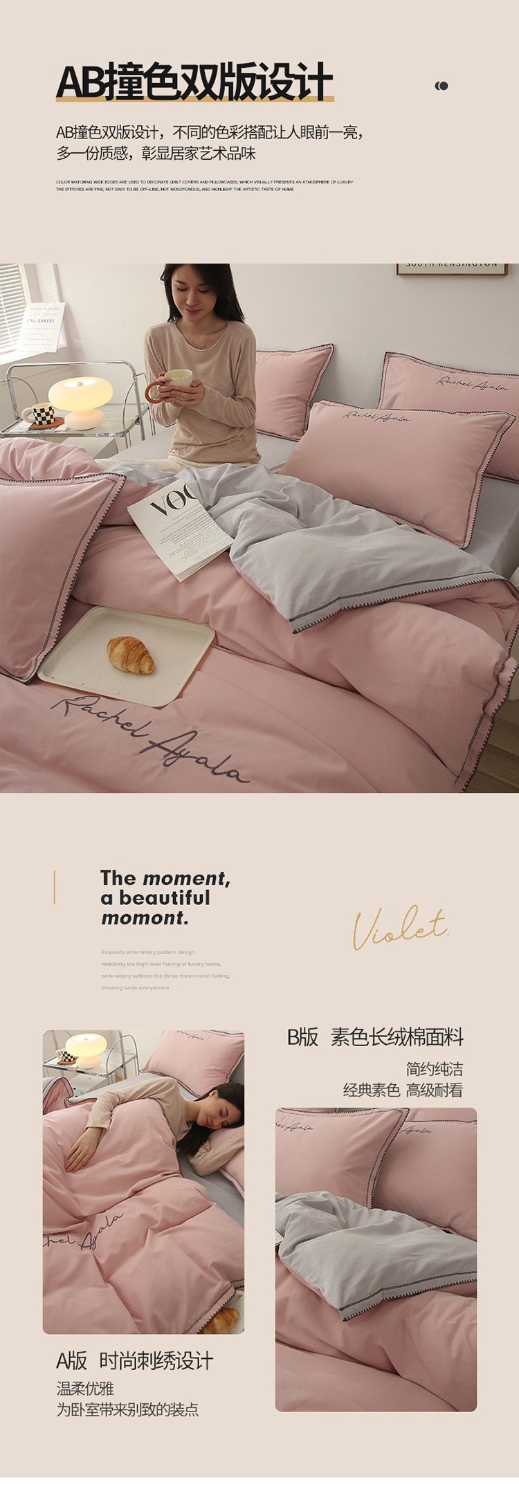 (总)艾莱家纺 2025新款A类50S云柔棉加密柔顺磨毛四件套-依人梦,依人梦-巴黎粉,依人梦-高级灰,依人梦-浪漫紫,依人梦-浅香槟