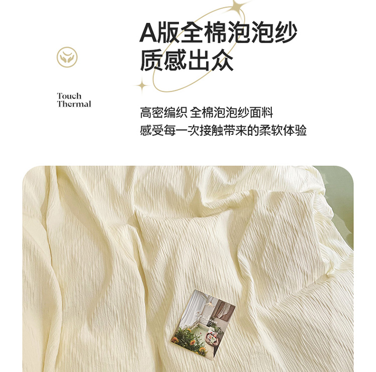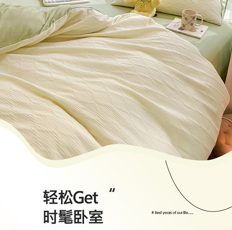 当前位置: 91家纺网 > 商品网购 > 床品套件 > 四件套 > 全棉普通四件套 > 琪格格纺织 2023新款纯棉泡泡纱水洗棉四件套 泡泡纱米白VS奶绿