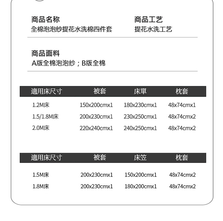 1.8米床笠款四件套 | ¥165.00 |